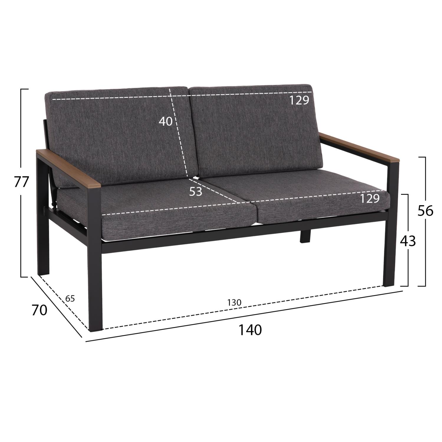 SAFIΝ is a beautiful 2-seater outdoor sofa in an imposing ANTHRACITE color. A characteristic feature of this sofa is that the legs are high, while the "touch" of polywood on the armrests gives a tone of luxury that does not go unnoticed.