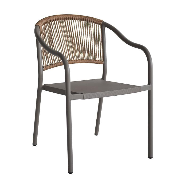 The combination of classic and modern is what makes the Dakar armchair a unique choice for your balcony and garden. The frame is made of electrostatically painted aluminum, the seat is made of durable textline fabric and the slightly curved back is upholstered with specially treated PE twisted rattan. Suitable for domestic and professional use.