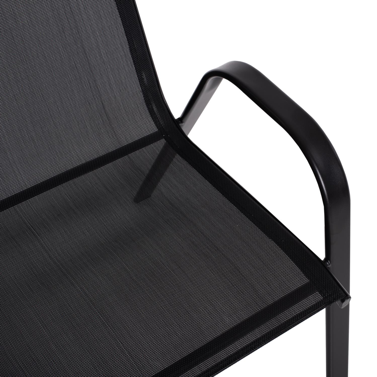 The armchair is upholstered with high quality 2x1 (540g) textilene fabric. This is a thick, strong, and durable polyester fabric. This means that it is made of polyester fibers with PVC.