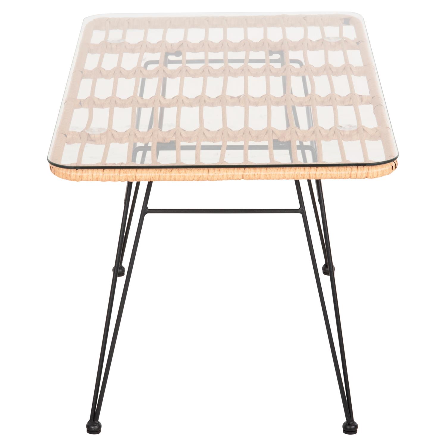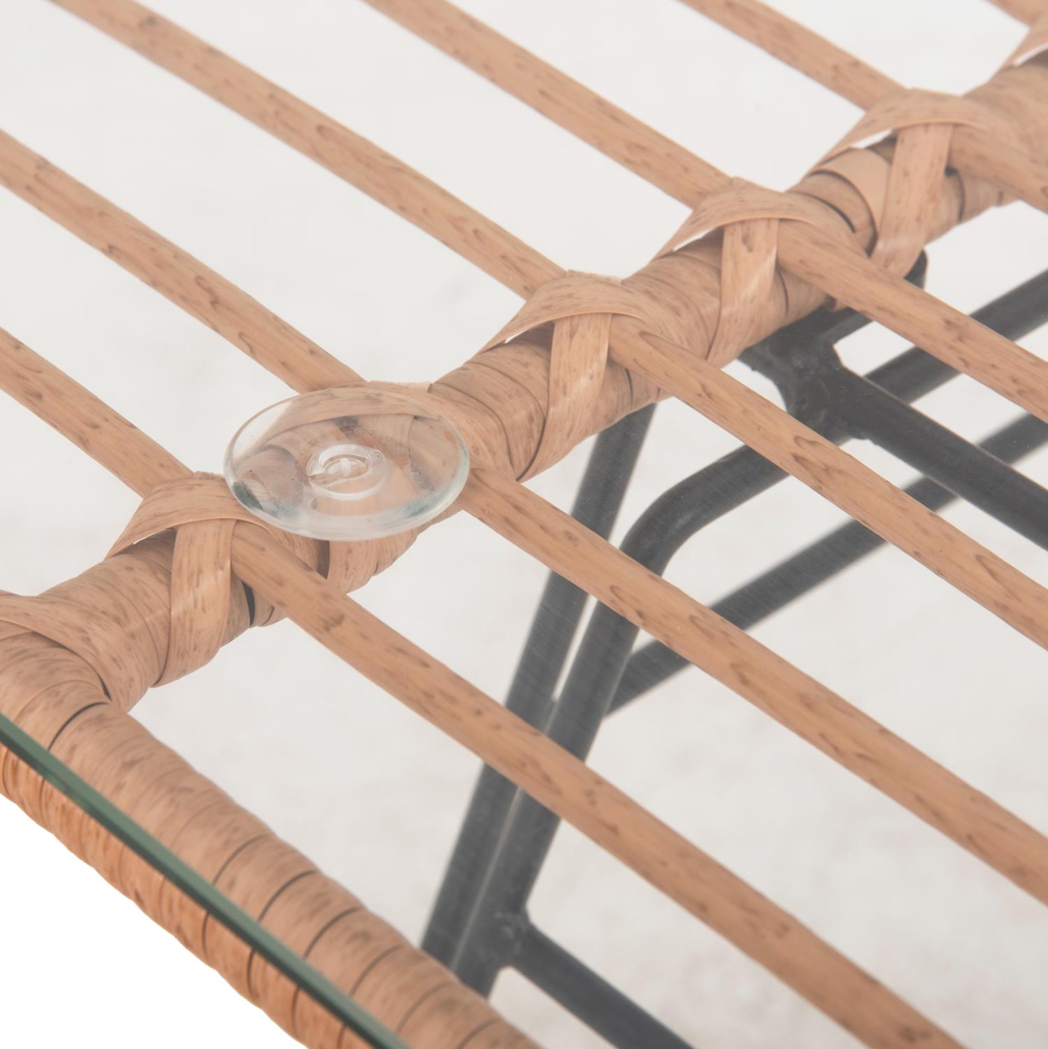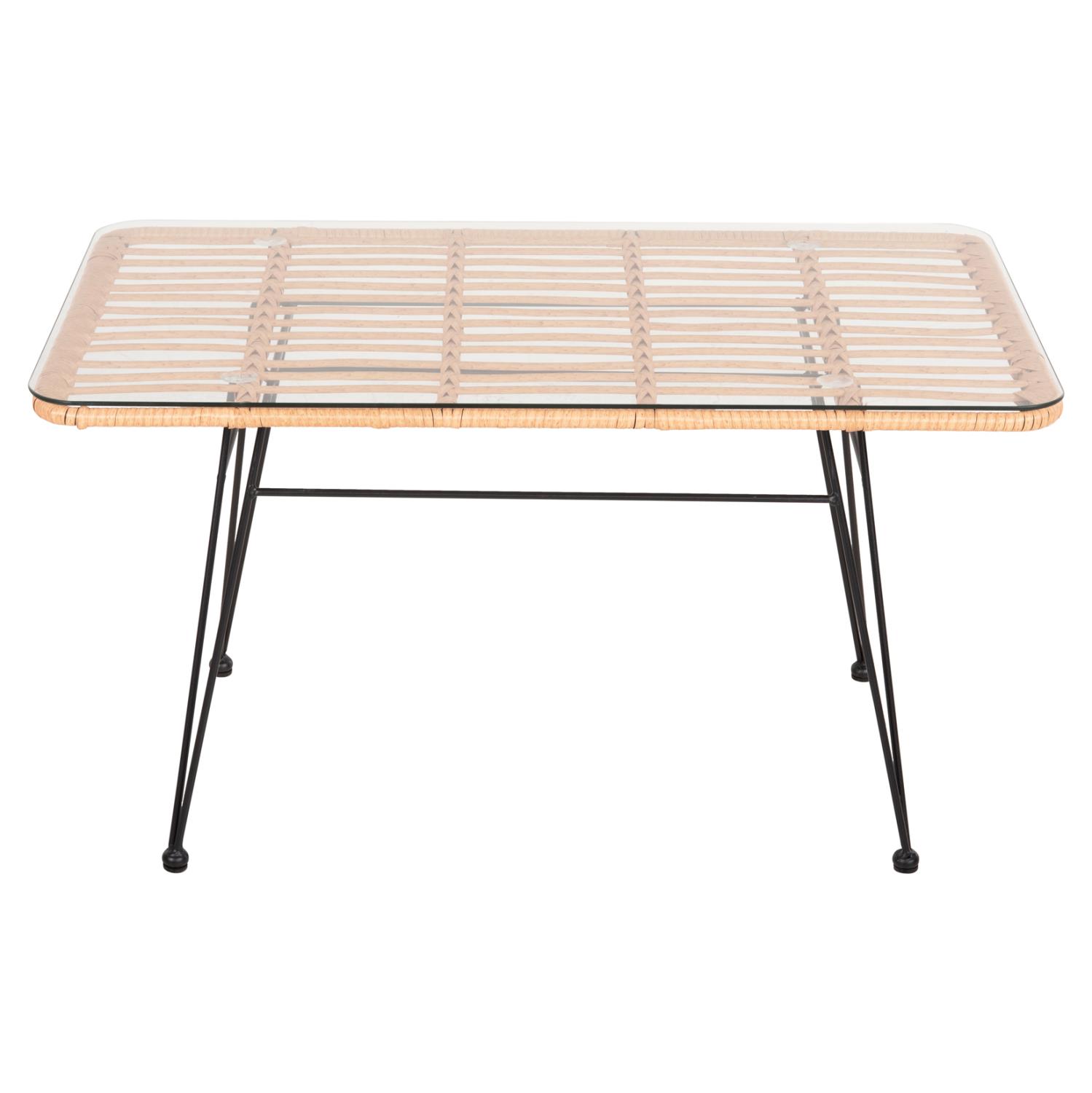 The rectangular (with rounded corners) and short outdoor table of the ALLEGRA furniture series has a BLACK metal frame with 4 legs. The upper part of the frame is covered with synthetic Rattan in BEIGE (natural) color and sports rounded corners, where the safety glass top is placed. A classic design that you can match with many different chairs or armchairs, either of the same or different philosophy. Its dimensions make it ideal for smaller spaces, both professional and home.
