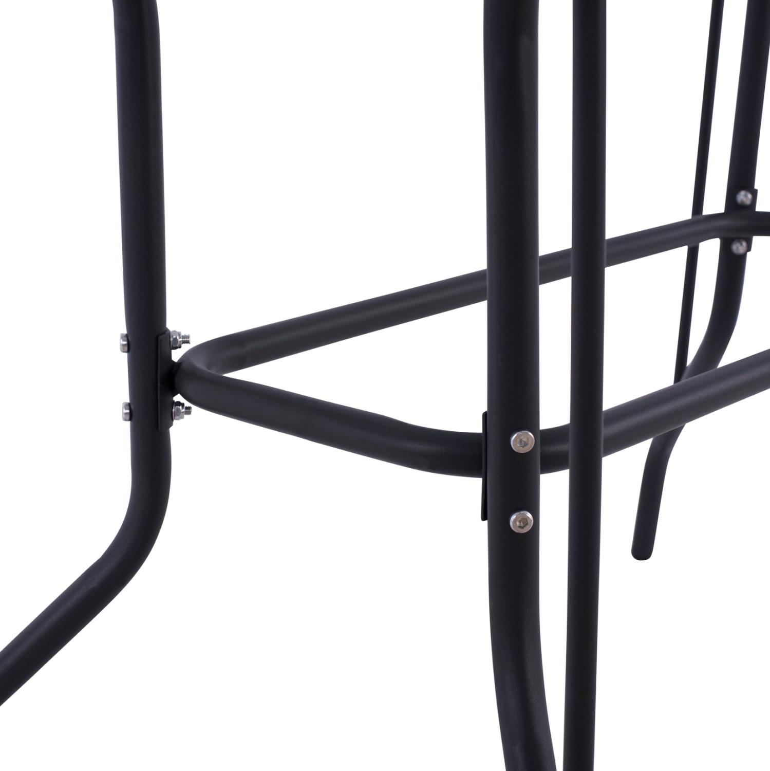 This Outdoor Dining Set features a table with a GREY metal frame and a REINFORCED glass opaque tabletop, and 4 GREY metal stackable armchairs with a seat & backrest made of high quality textilene fabric (2x1) in GREY color.