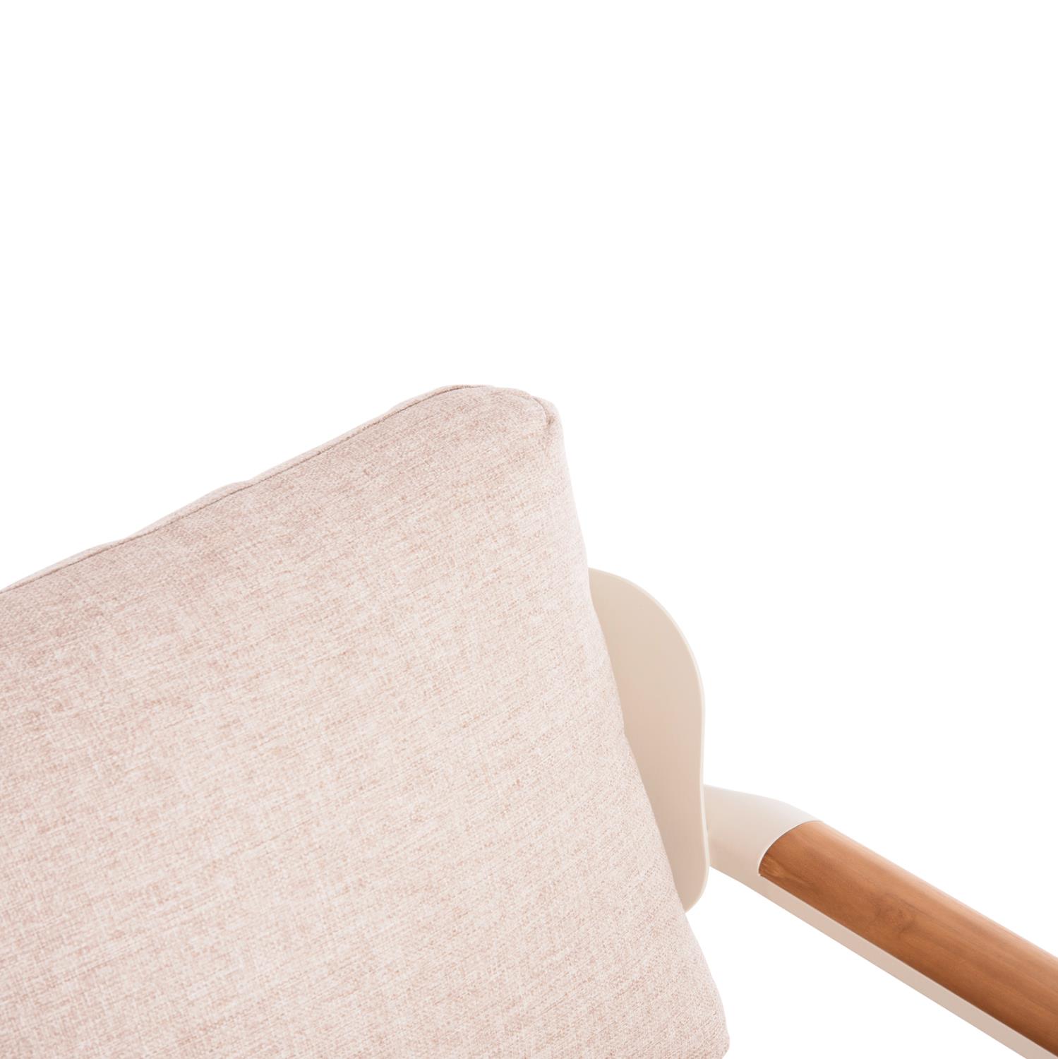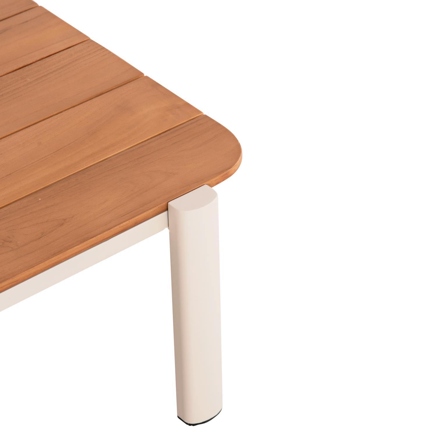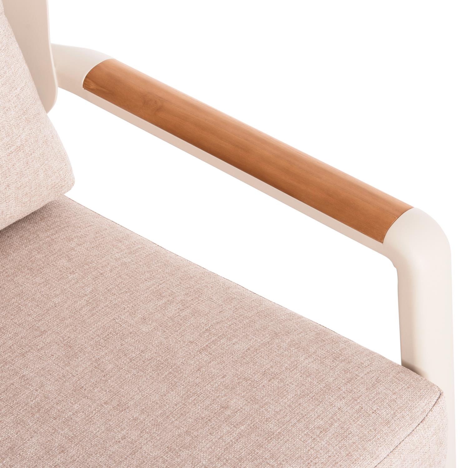 ELARA is a 4-piece outdoor lounge set consisting of a rectangular coffee table, 2 armchairs and 1 two-seater sofa. The frame throughout the set is made of aluminum in BEIGE color, while the cushions throughout the set are covered with OLEFIN fabric in BEIGE color and are filled with medium hardness foam materials for maximum comfort, and they also have zippers for easy removal. The tabletop on the coffee table and the cover details on the arms of both the armchairs and the sofa are made of quality teak wood. What more could anyone ask for to upgrade their outdoor space?