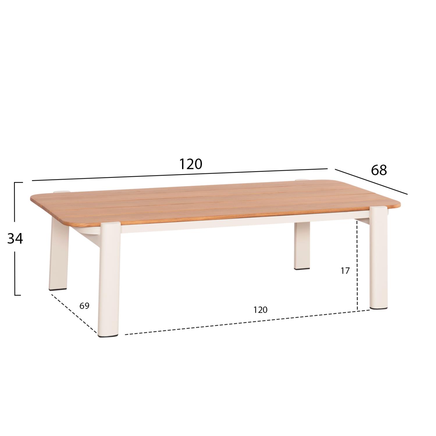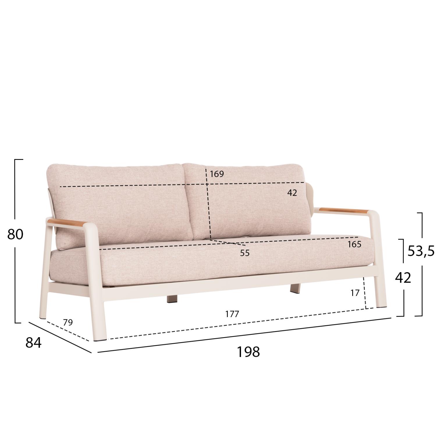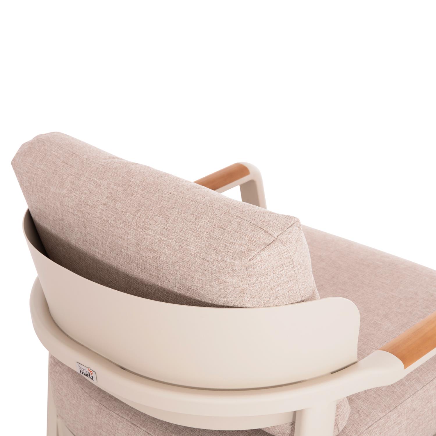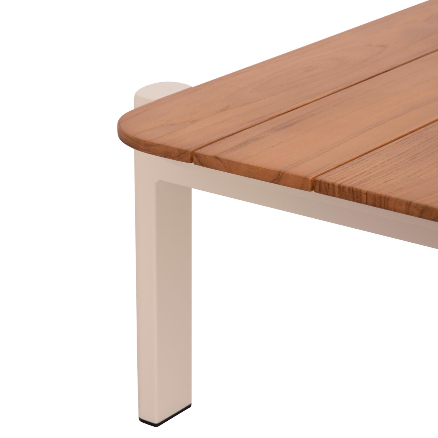 ELARA is a 4-piece outdoor lounge set consisting of a rectangular coffee table, 2 armchairs and 1 two-seater sofa. The frame throughout the set is made of aluminum in BEIGE color, while the cushions throughout the set are covered with OLEFIN fabric in BEIGE color and are filled with medium hardness foam materials for maximum comfort, and they also have zippers for easy removal. The tabletop on the coffee table and the cover details on the arms of both the armchairs and the sofa are made of quality teak wood. What more could anyone ask for to upgrade their outdoor space?