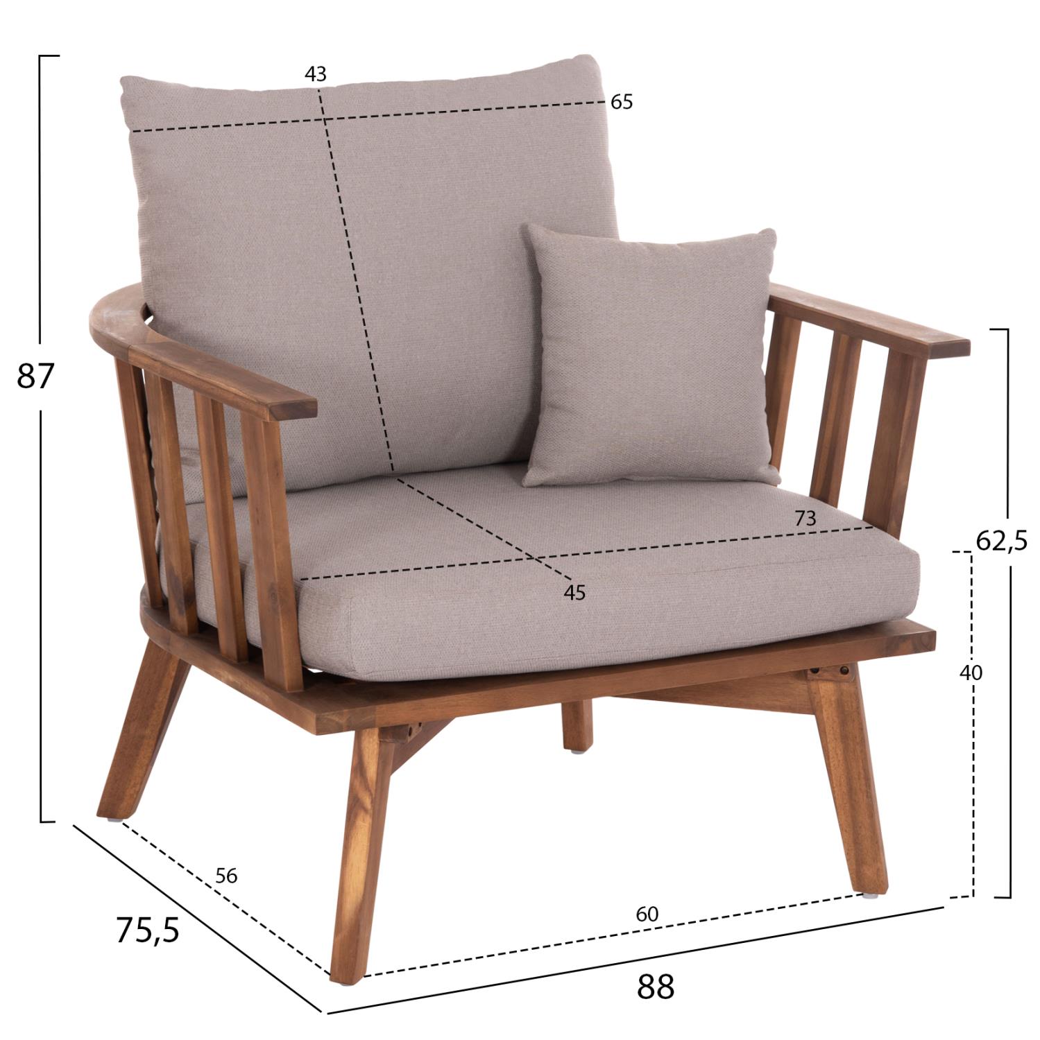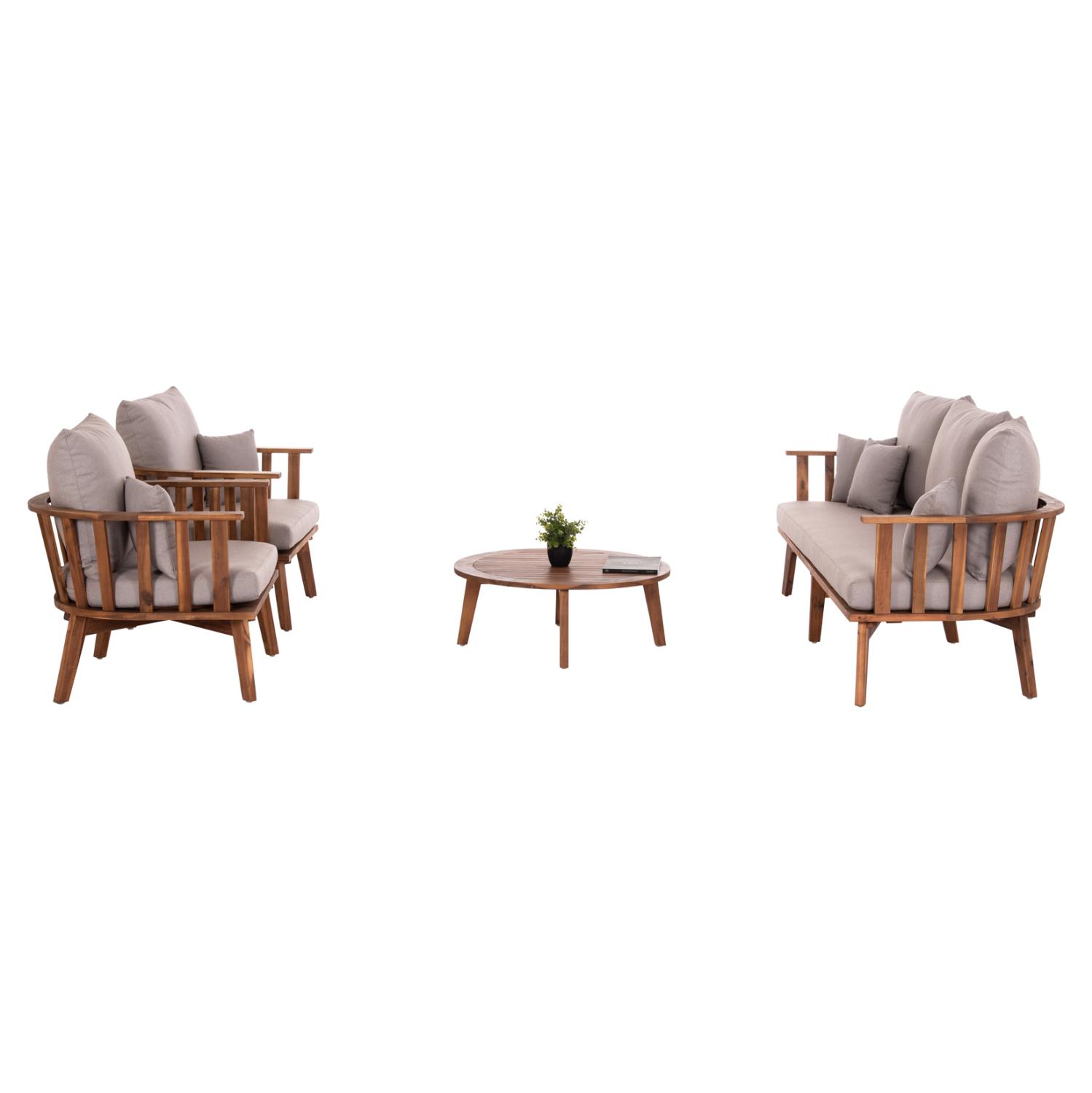 Σετ κήπου Σαλόνι HARRA C6236 4 τμχ. Ξύλο Ακακίας Φυσικό - Μαξιλάρια Λευκά