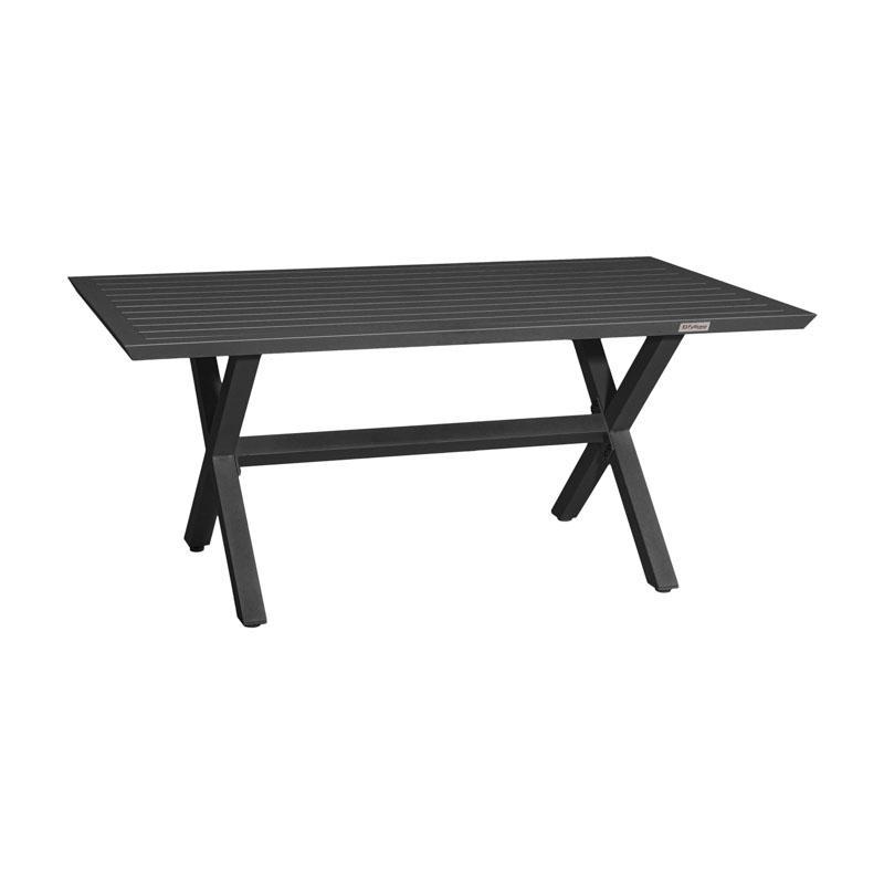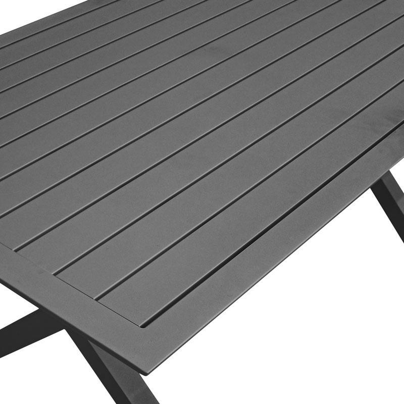 Table top: Aluminum slats with X-shaped legs