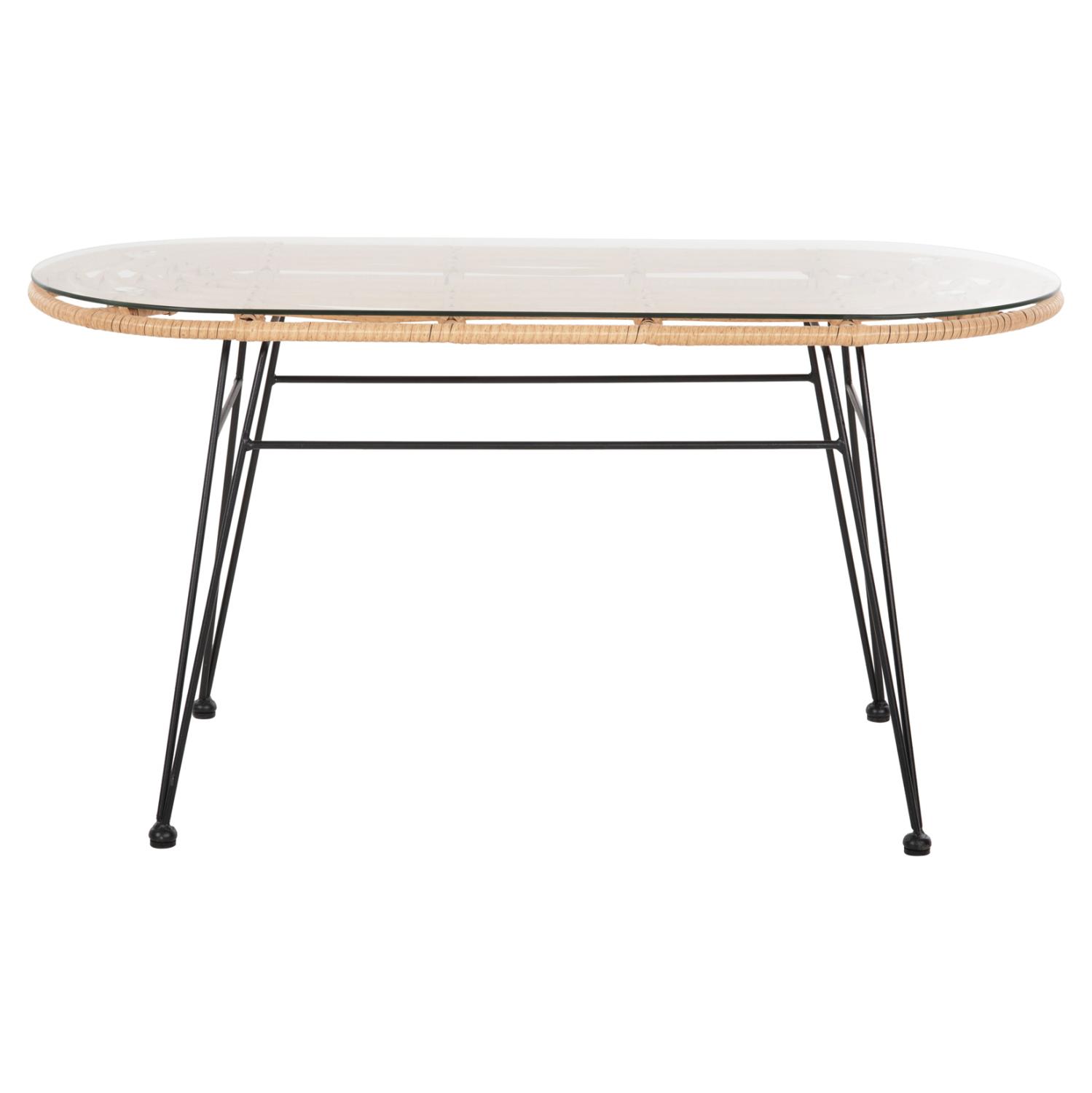 The oval and short outdoor table of the ALLEGRA furniture series has a BLACK metal frame with 4 legs. The upper part of the frame is covered with synthetic Rattan in BEIGE (natural) color and sports rounded corners, where the safety glass top is placed. A classic design that you can match with many different chairs or armchairs, either of the same or different philosophy. Its dimensions make it ideal for smaller spaces, both professional and home.