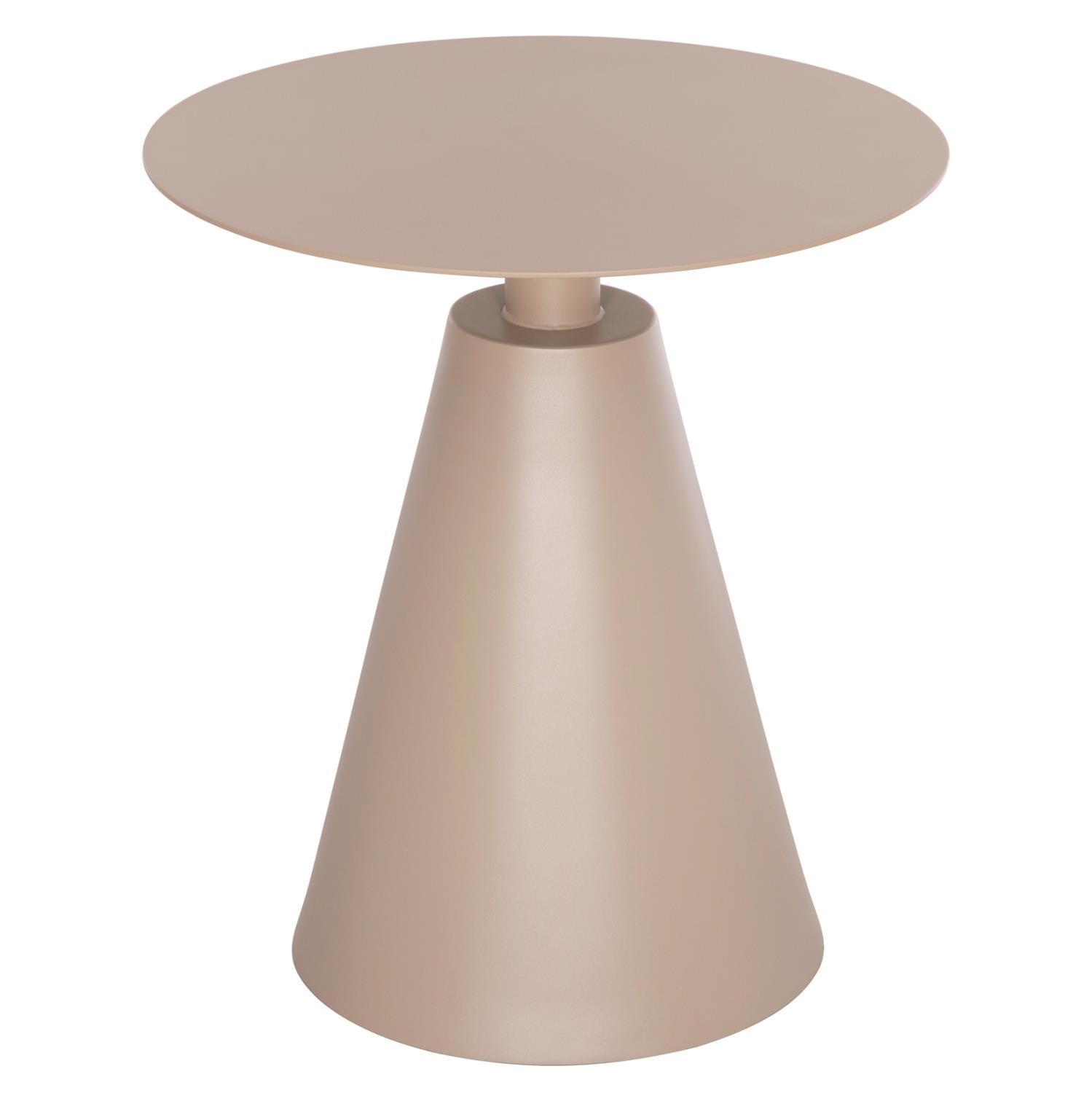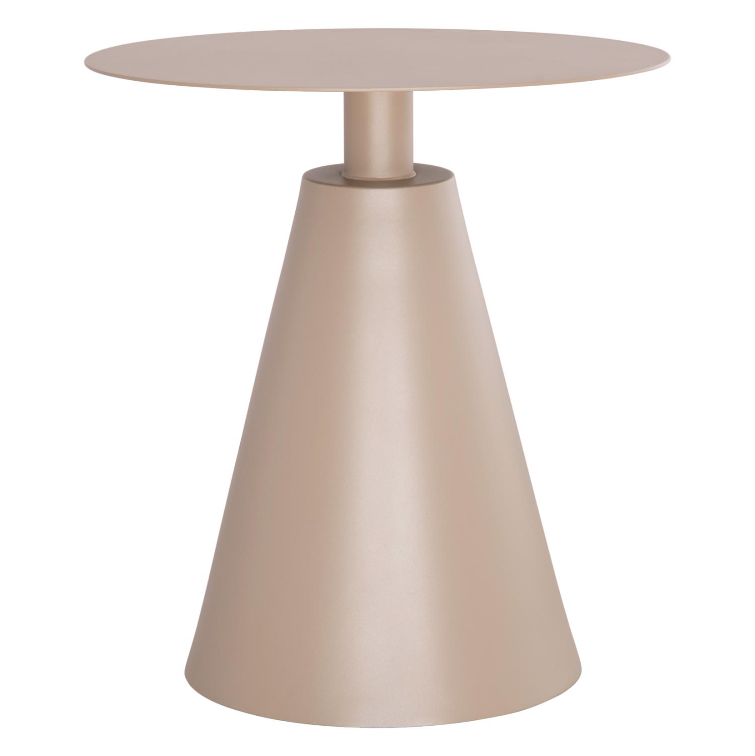 The “SERA” outdoor side table is one of the new additions to our range. It is a round aluminum coffee table with a conical base. It is entirely in a soft CAPPUCCINO color. Ideal for both home and business premises.