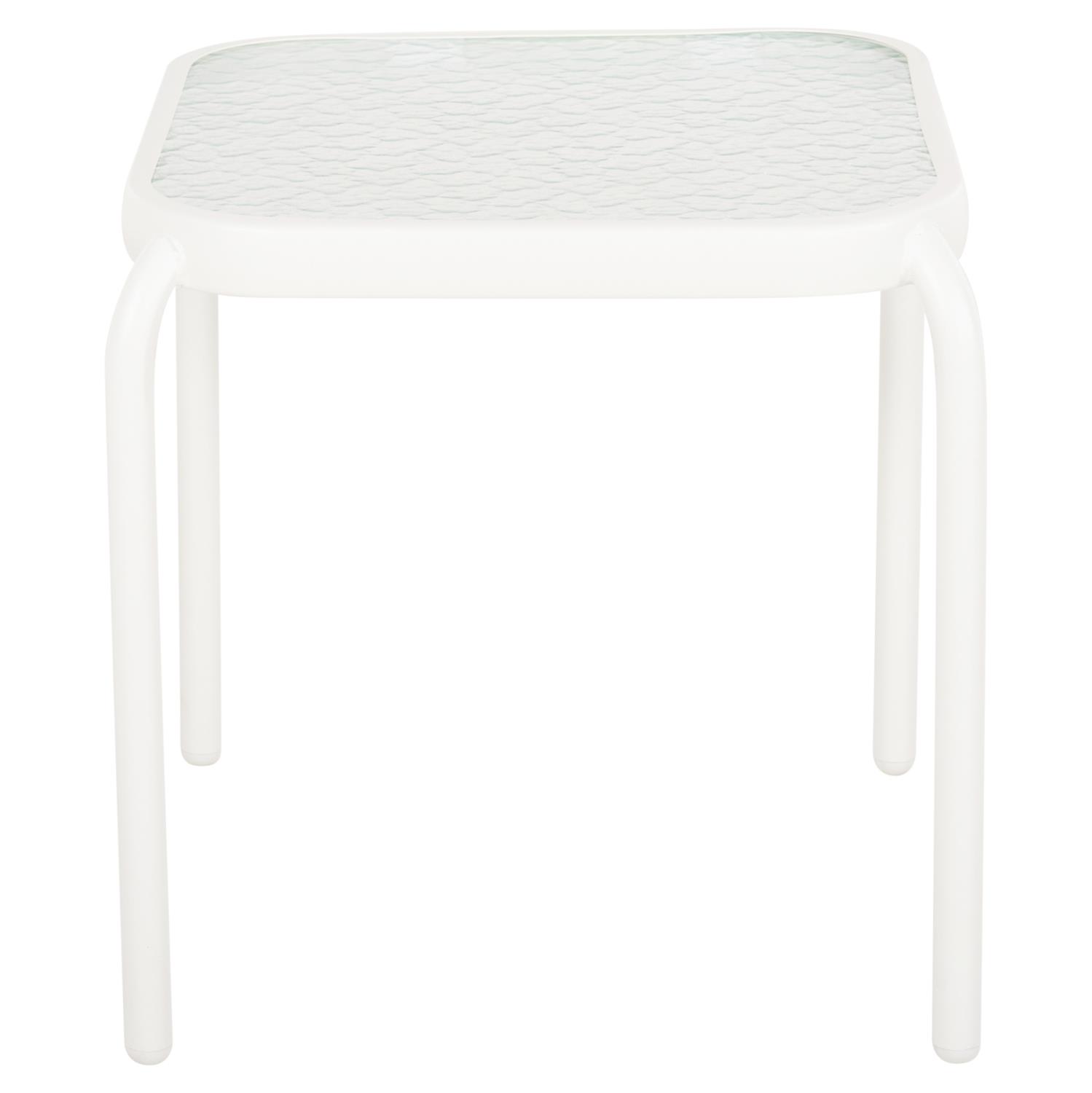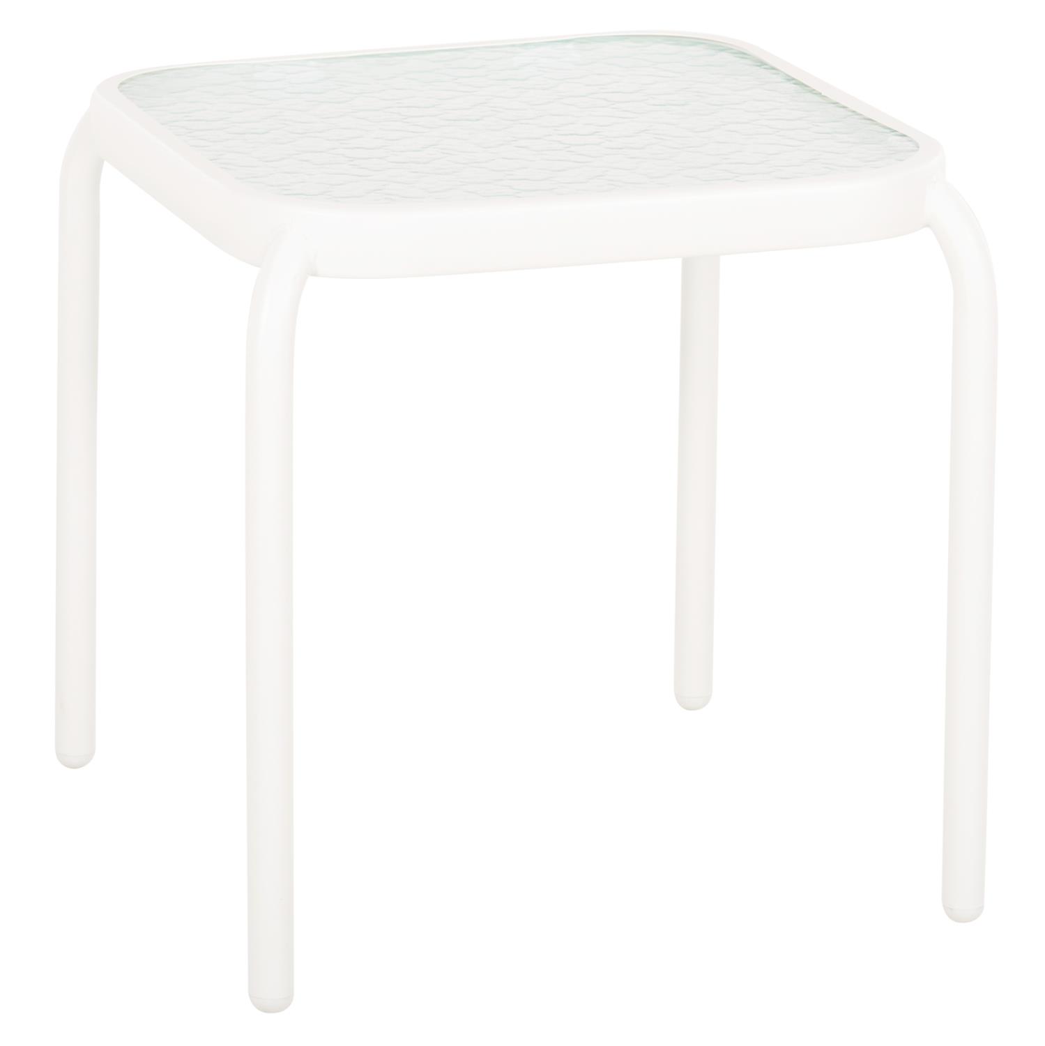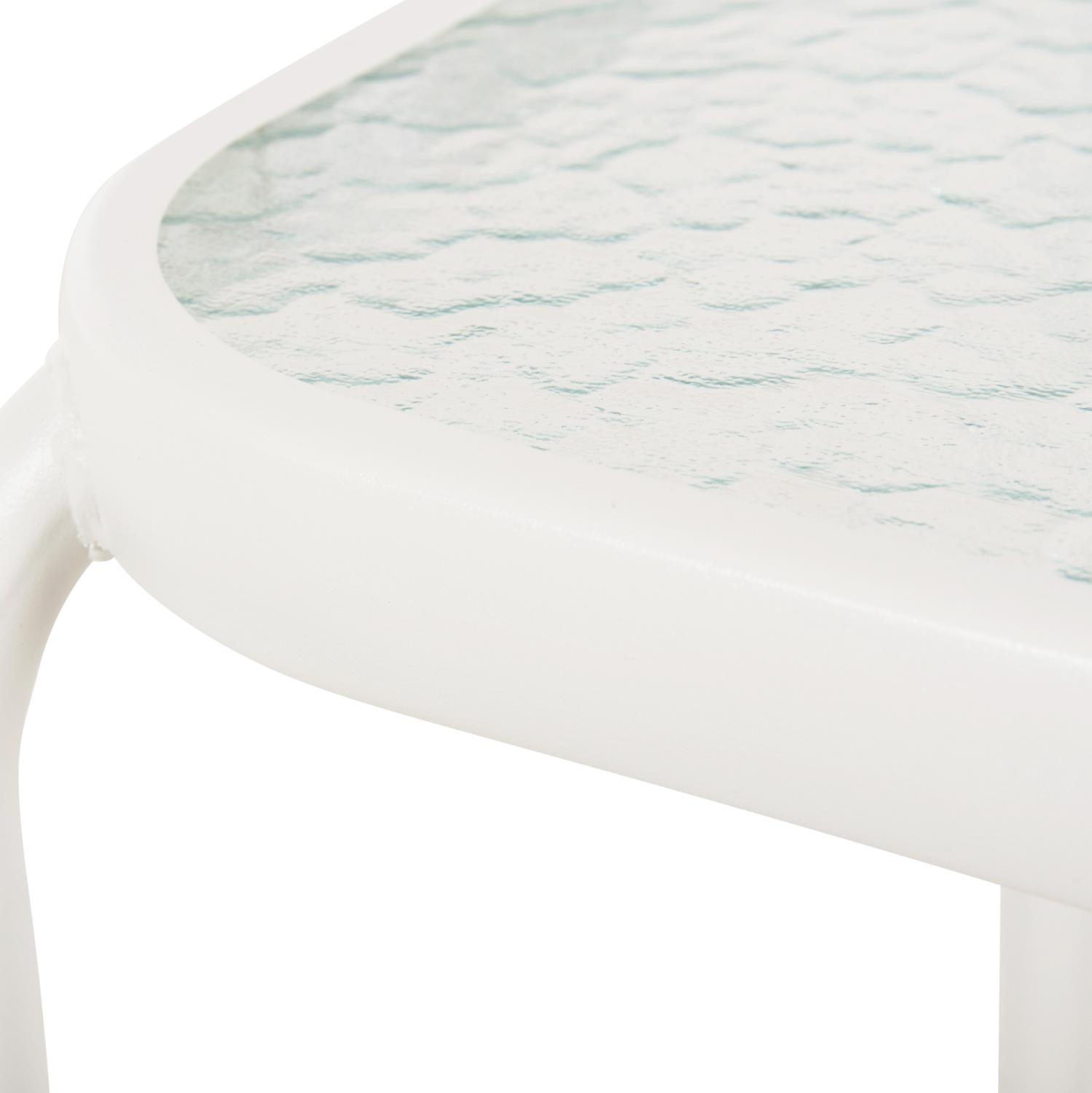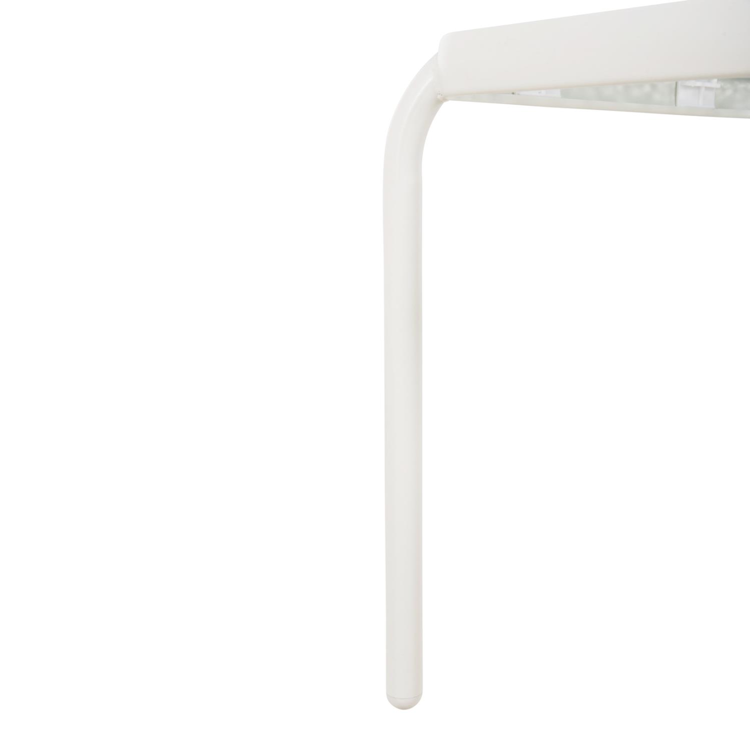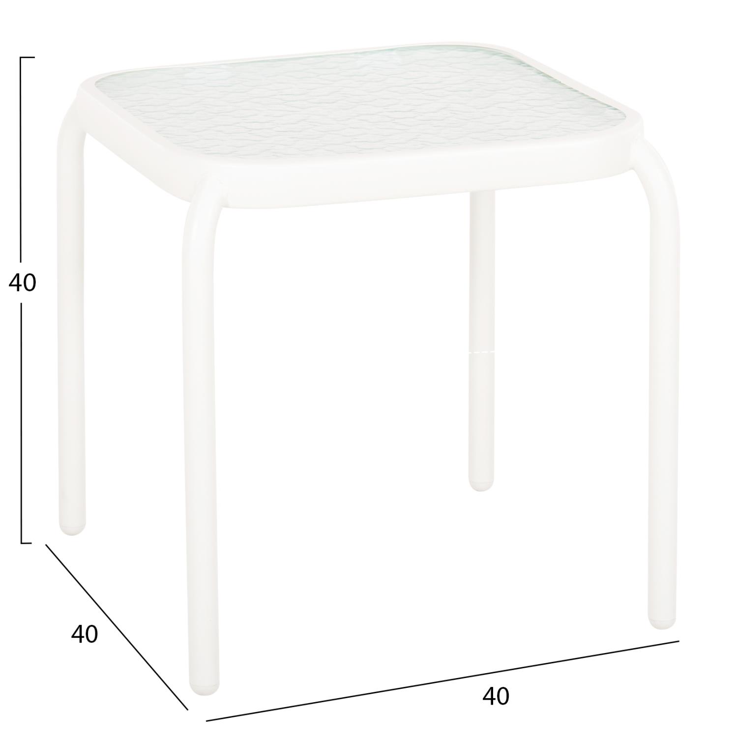 The DIDO outdoor side table in WHITE color is square with rounded corners and 4 typical legs. It is a small table in the style of many other tables that are not missing from almost any balcony or garden.