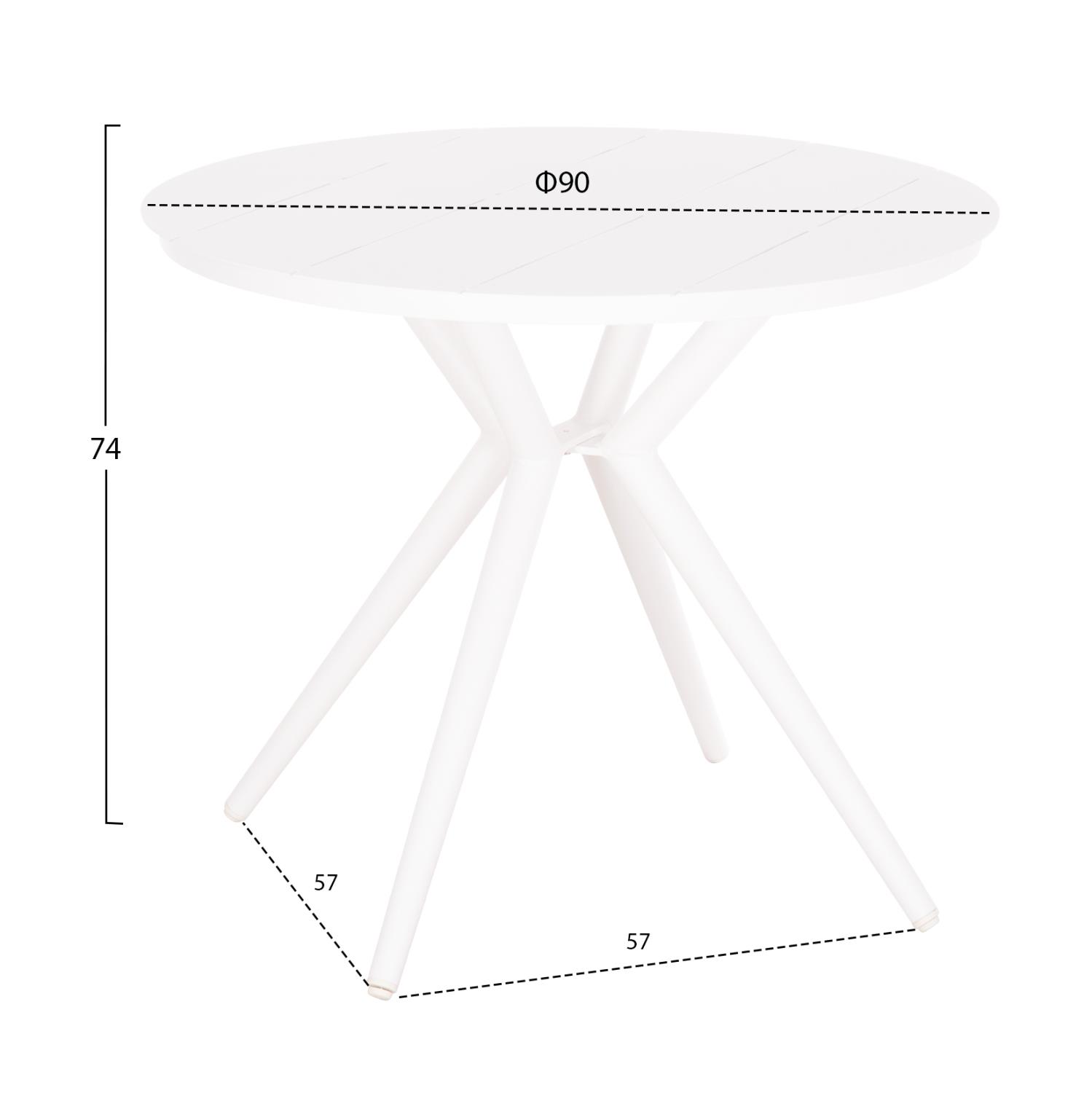 The HIGER round table is made entirely of aluminum in WHITE color. It rests on 4 legs that are joined right under the tabletop. Round tables are particularly practical and beautiful because they do not have "leaders", nor corners or legs in the corners which, many times, create uncomfortable situations. You will really love it! Combine it with chairs with the same aesthetic and transform your outdoor space.