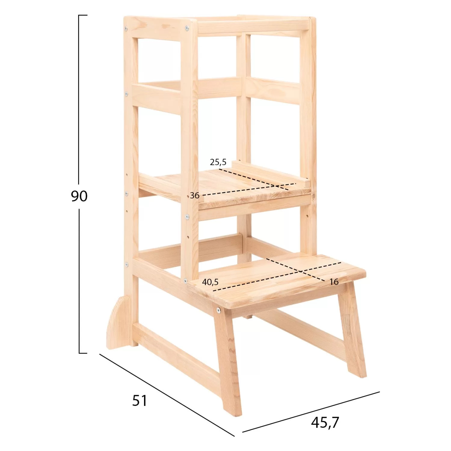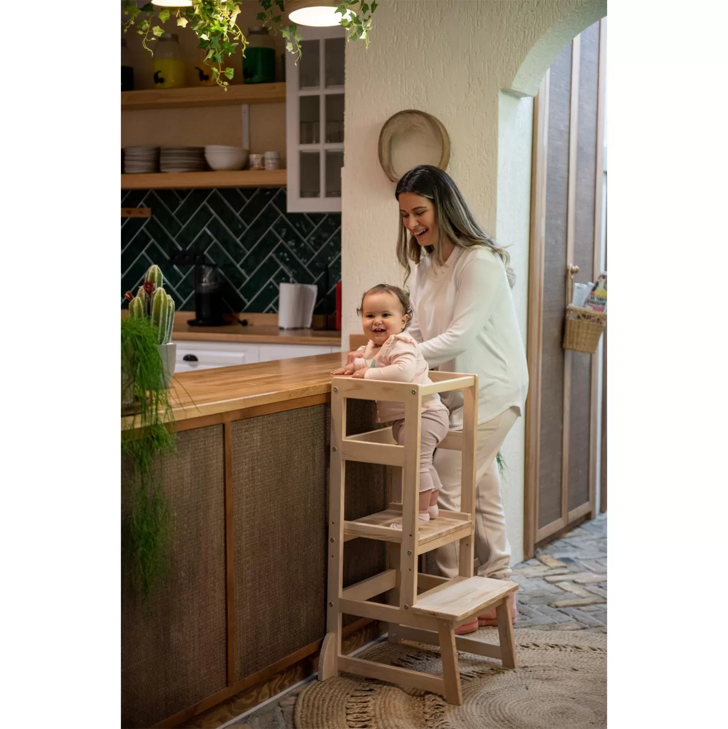 Montessori-style children's learning tower, an elegant, compact and ergonomic design.