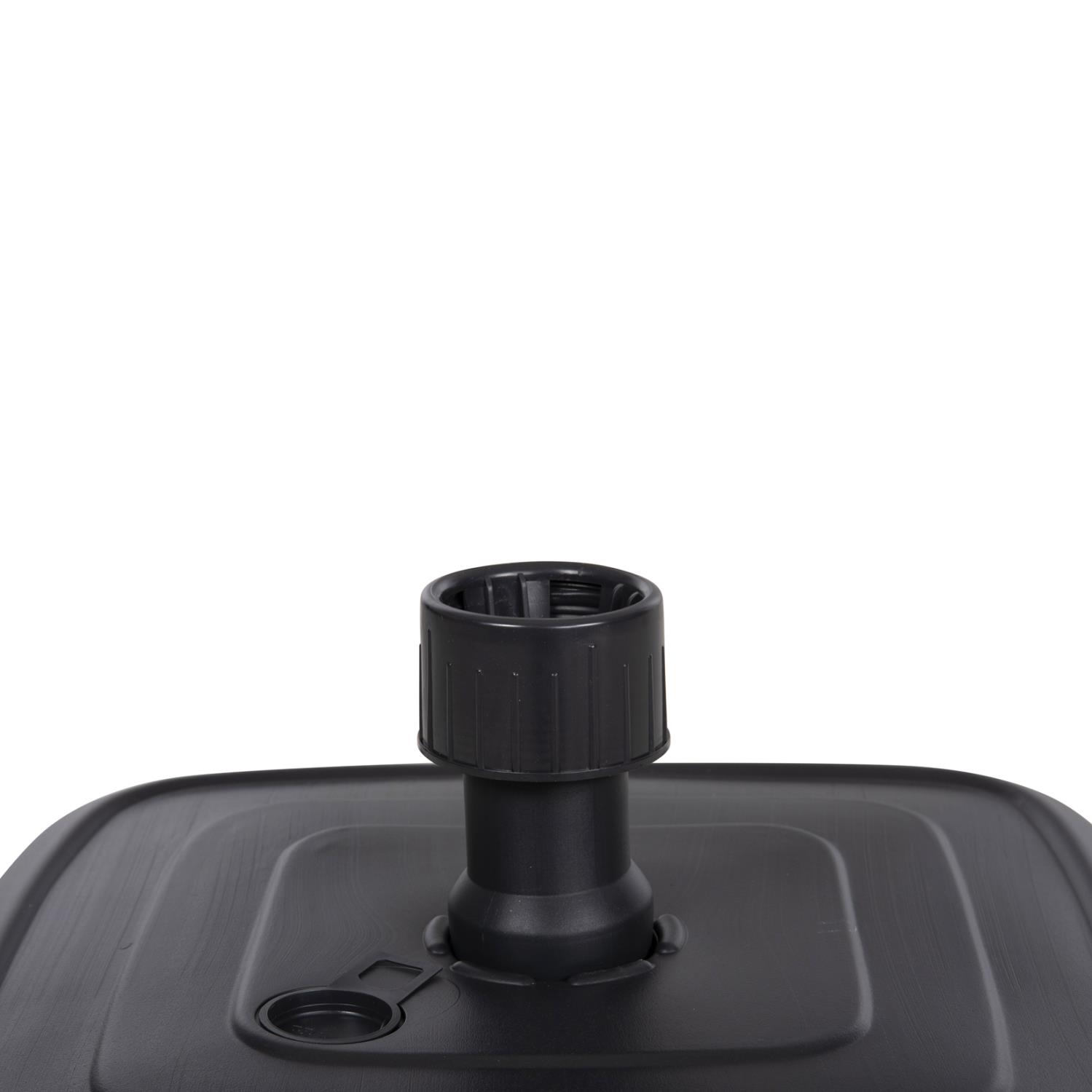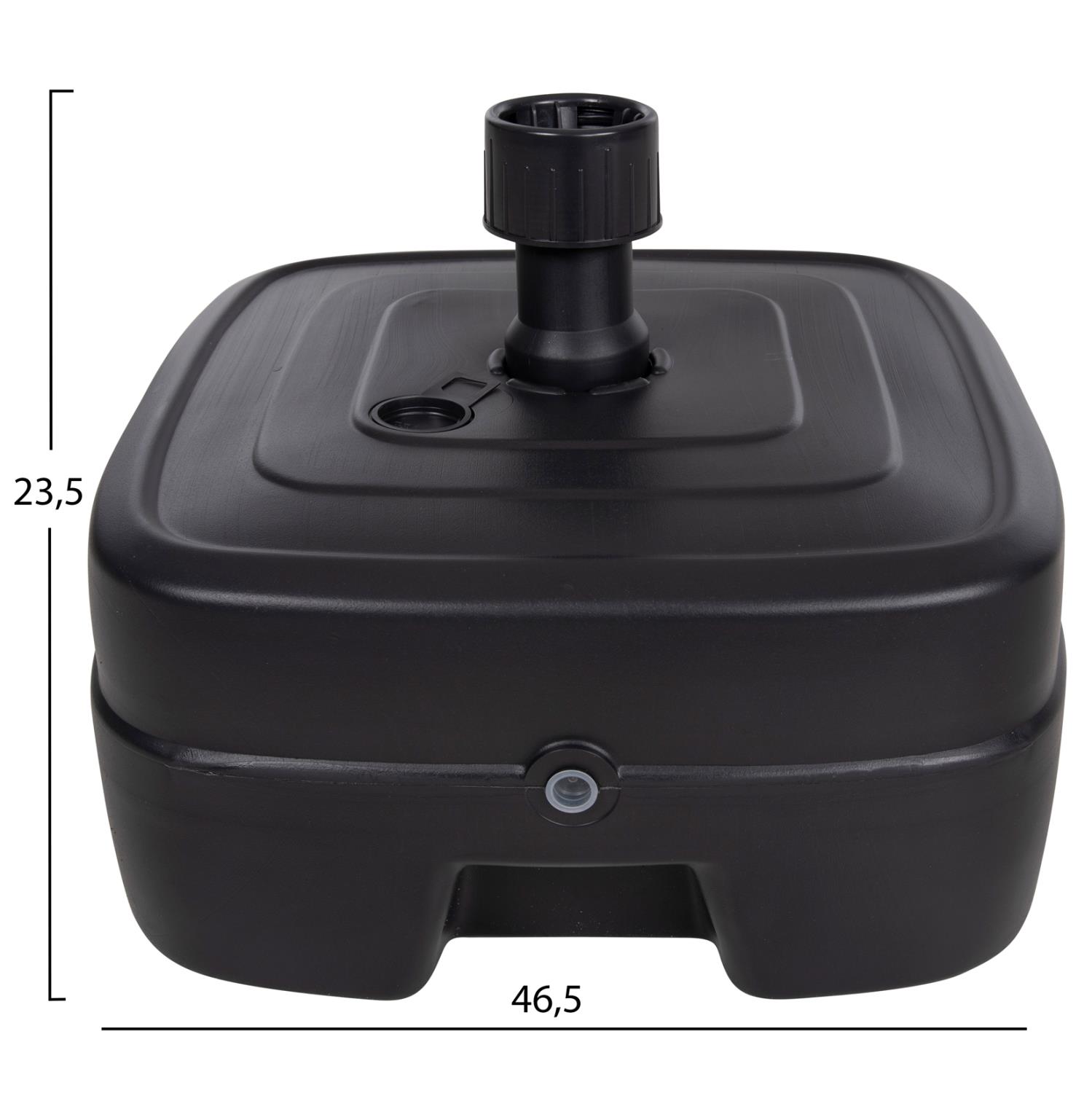 SOLBAS is the new addition to our range in the category of beach umbrella bases. It is a square plastic base in ANTHRACITE color, which has all the necessary features that make it sturdy as well as practical! It has a transport wheel and of course the adjustable socket for an umbrella pole. The pole’s dimensions should be 33/50mm.