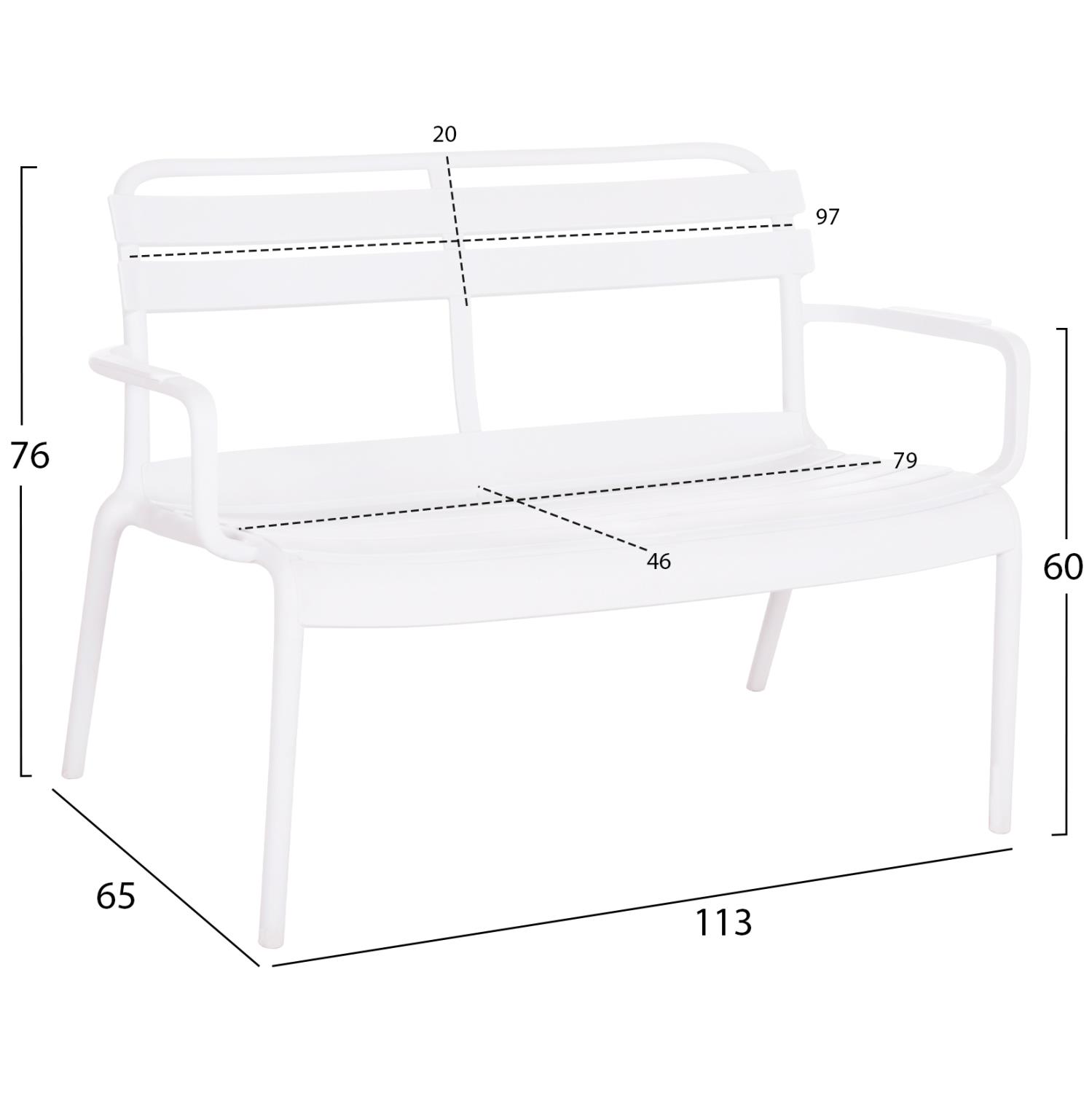 Παγκάκι Κήπου KORVER C6332.01 Διθέσιο Πολυπροπυλένιο Λευκό 113x65x76Υ εκ.