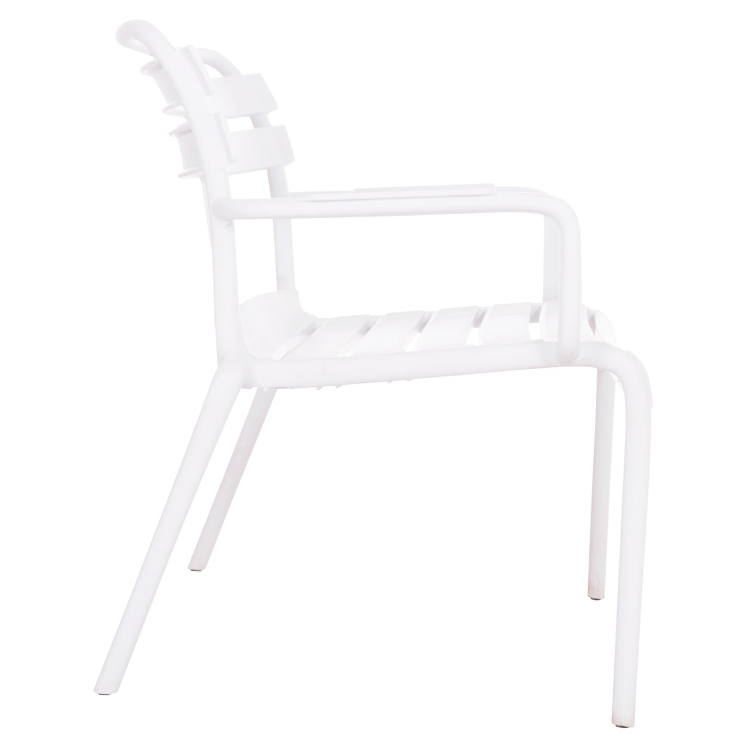 The KORVER 2-seater outdoor bench is entirely made of polypropylene in WHITE color. In terms of design, it is simple with beautiful curves, with a back and armrests, and can be used in many ways, offering a practical and durable use. Ideal for use in outdoor spaces, either professional (banquet venues, catering companies, etc.) or for the home.