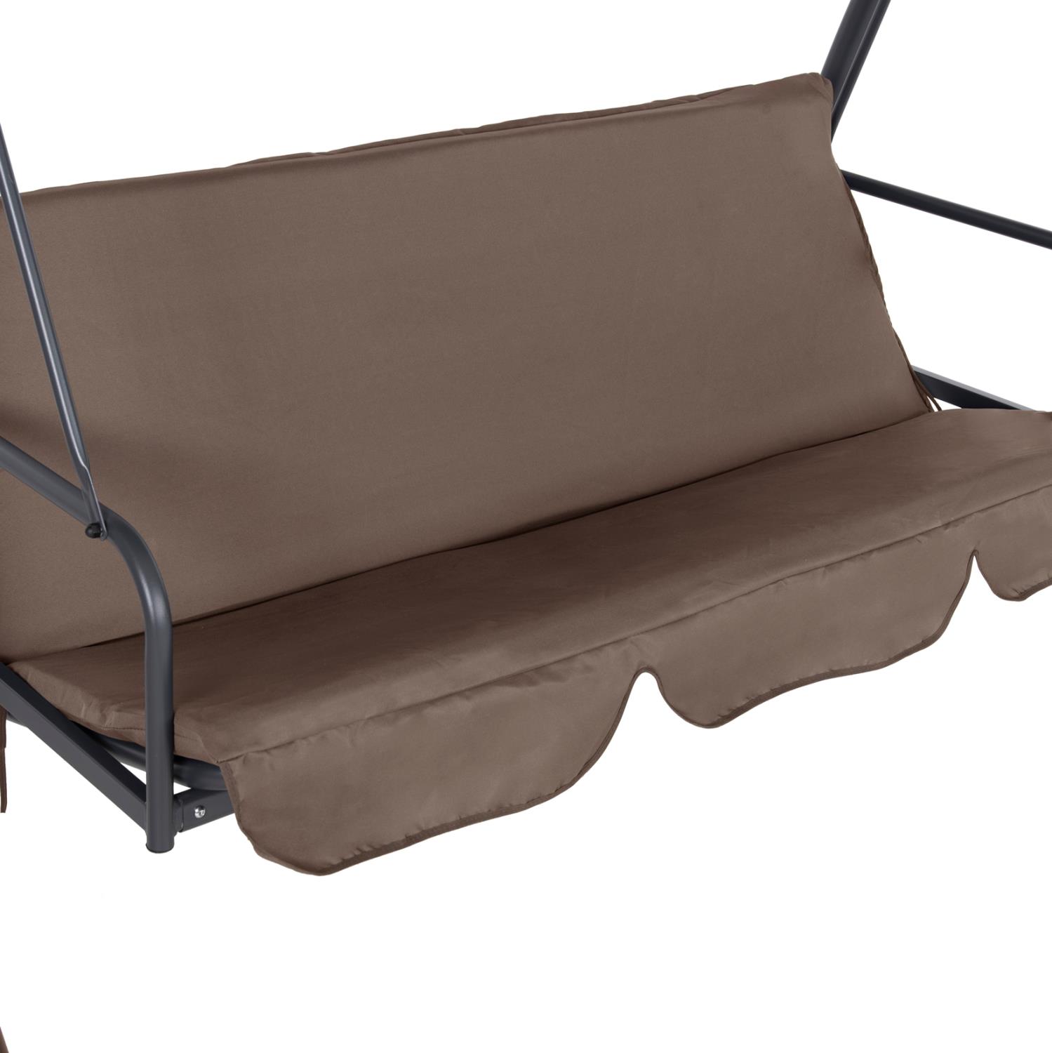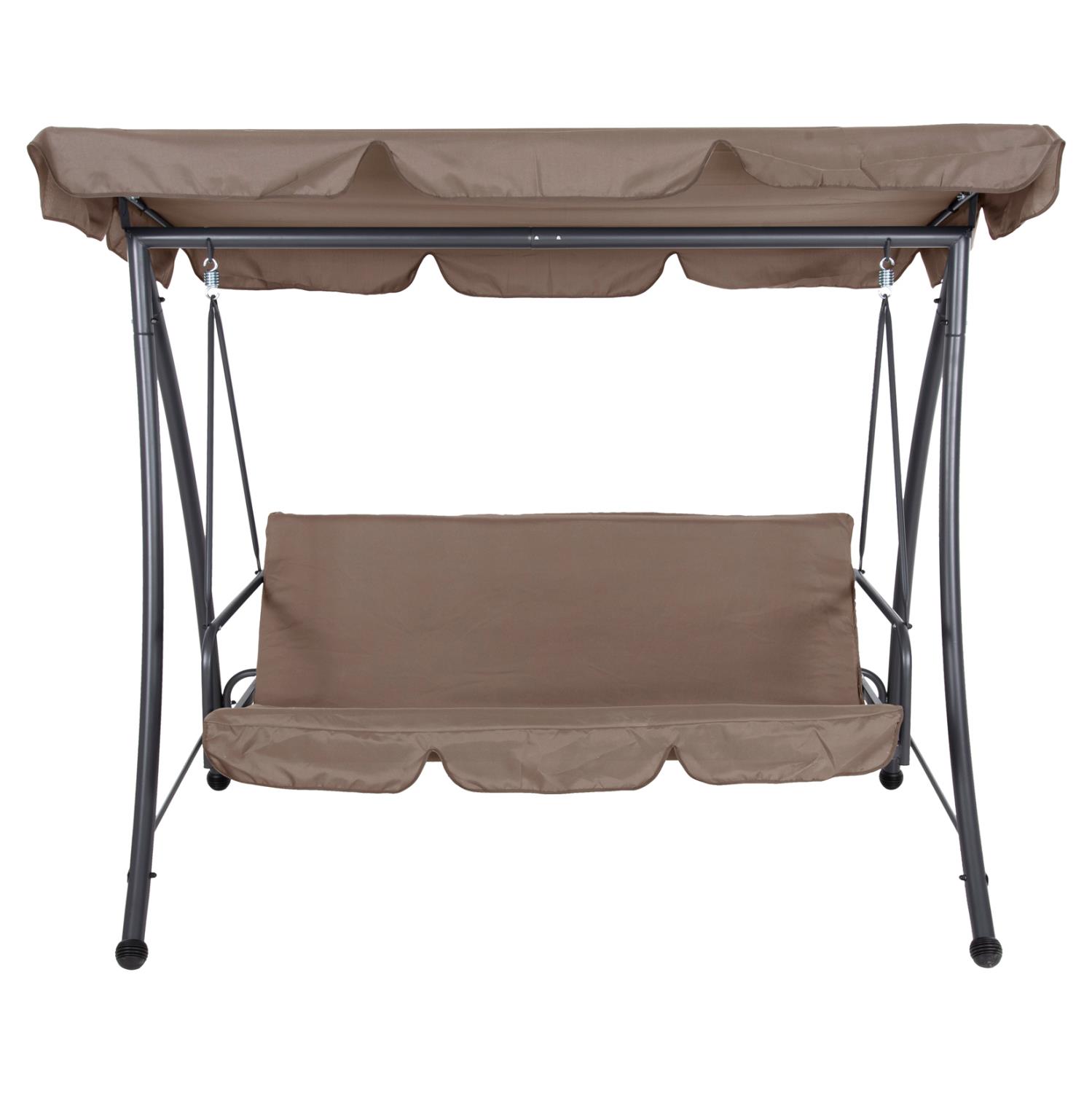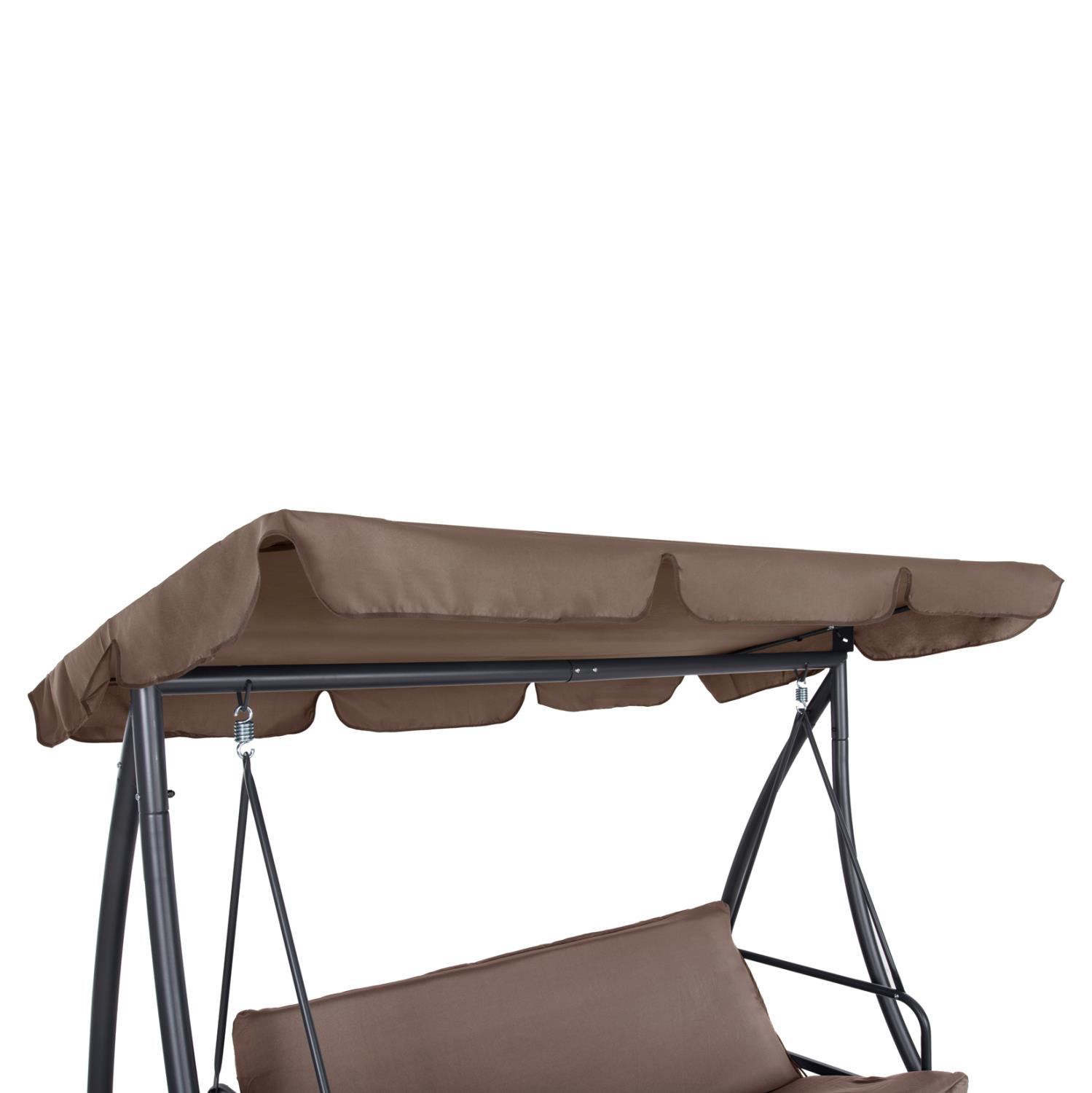 LIKID is the latest addition to its category. It is a 3-seater porch swing with sunshade, ideal for use on balconies, terraces, yards, and gardens. Throughout time, swings are the epitome of carefreeness and relaxation. This particular one, in fact, becomes a bed, thus exaggerating these concepts! It is made of metal in GREY color, while the fabrics on both the cushions and the shade are in light BROWN color. The whole construction is luxurious and will be a "magnet" of interest, wherever it is placed!