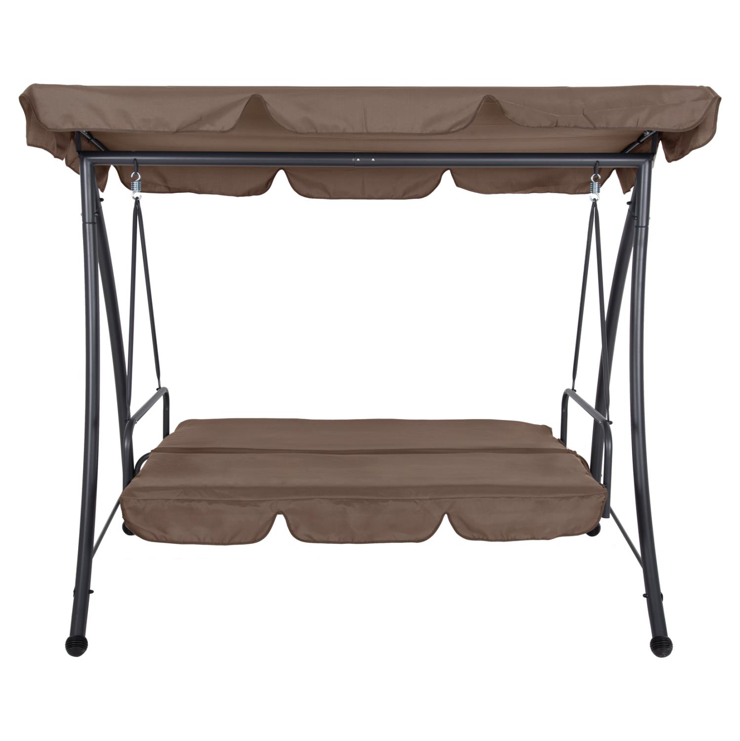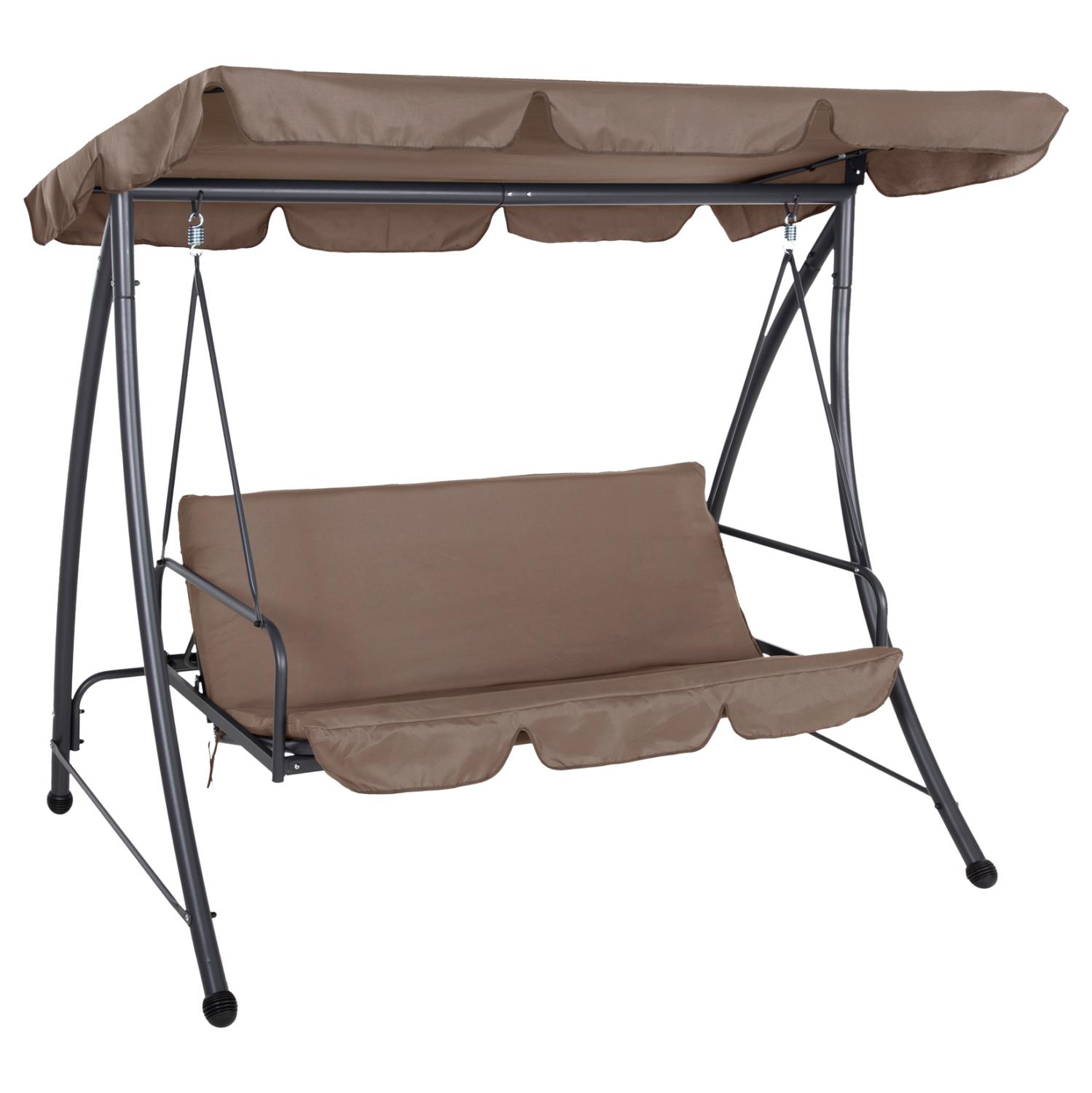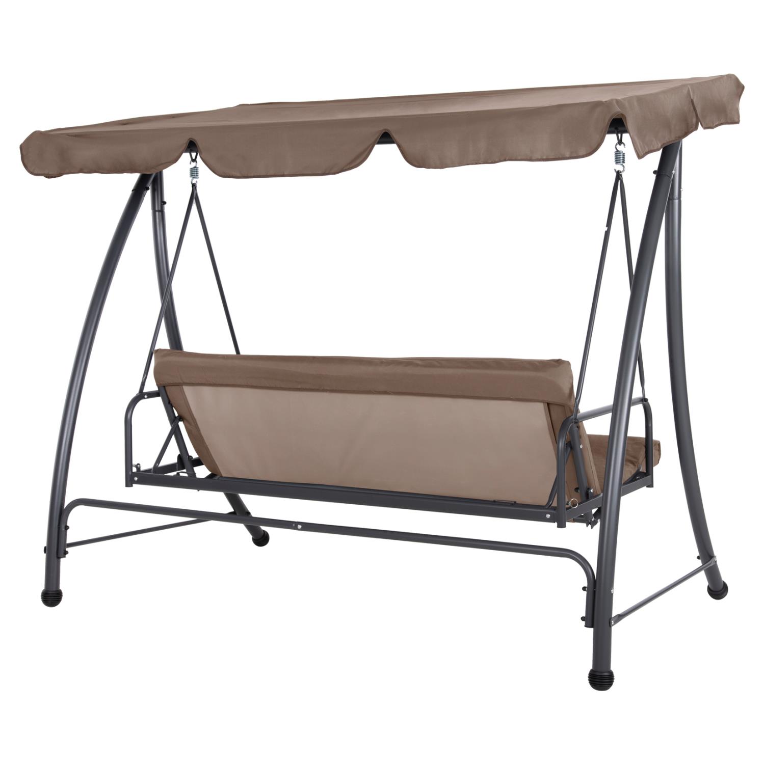 LIKID is the latest addition to its category. It is a 3-seater porch swing with sunshade, ideal for use on balconies, terraces, yards, and gardens. Throughout time, swings are the epitome of carefreeness and relaxation. This particular one, in fact, becomes a bed, thus exaggerating these concepts! It is made of metal in GREY color, while the fabrics on both the cushions and the shade are in light BROWN color. The whole construction is luxurious and will be a "magnet" of interest, wherever it is placed!