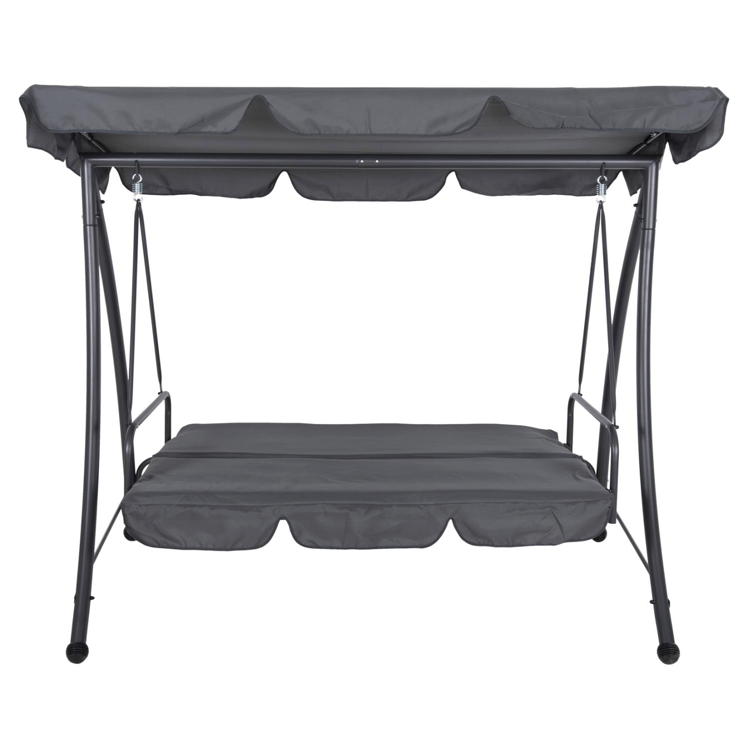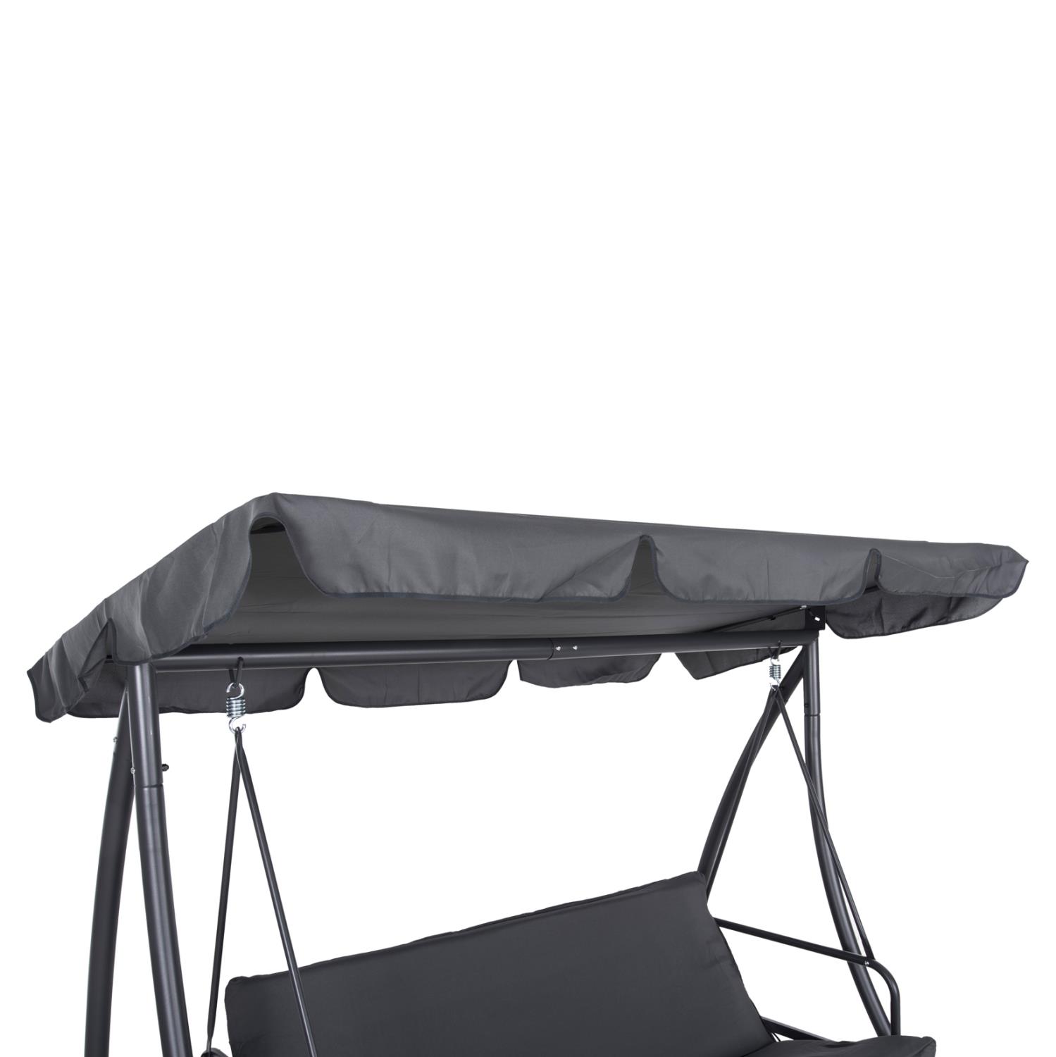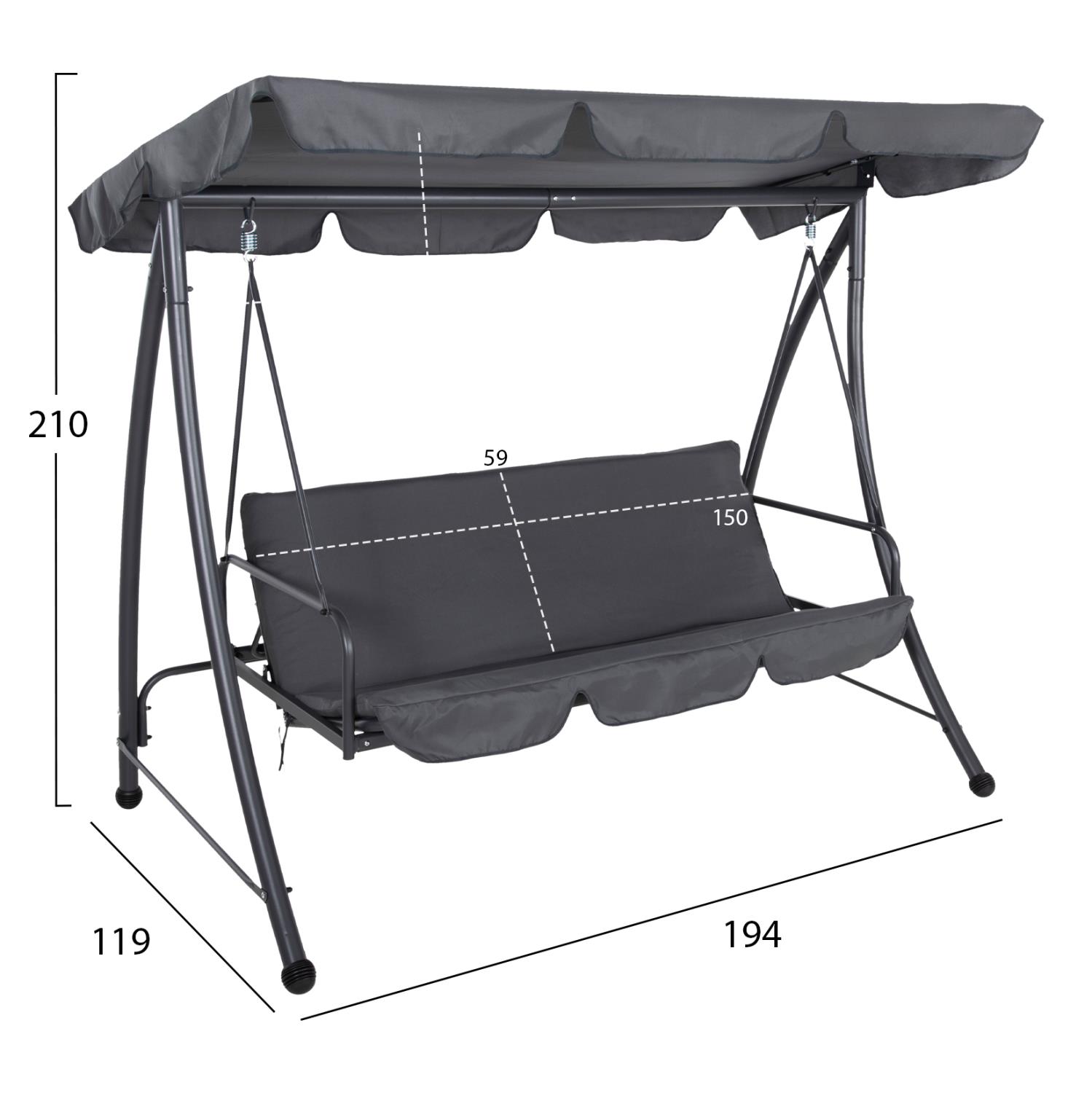 LIKID is the latest addition to its category. It is a 3-seater porch swing with sunshade, ideal for use on balconies, terraces, yards, and gardens. Throughout time, swings are the epitome of carefreeness and relaxation. This particular one, in fact, becomes a bed, thus exaggerating these concepts! It is made of metal in GREY color, while the fabrics on both the cushions and the shade are also in GREY color. The whole construction is luxurious and will be a "magnet" of interest, wherever it is placed!