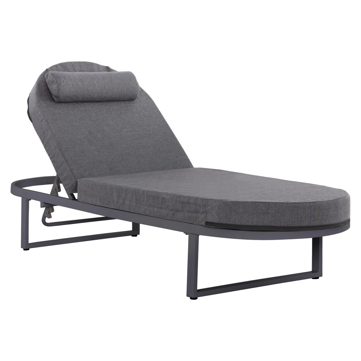 The MALLOW professional beach sunlounger in DARK GREY is sturdy and luxurious. It is made of aluminum and galvanized metal inside the frame for extra durability and it has a thick cushion (mattress) with a headrest in DARK GREY color. In terms of design, its "lines" are clear in an OVAL implementation. The recline “stepper” has 5 levels (including the flat).