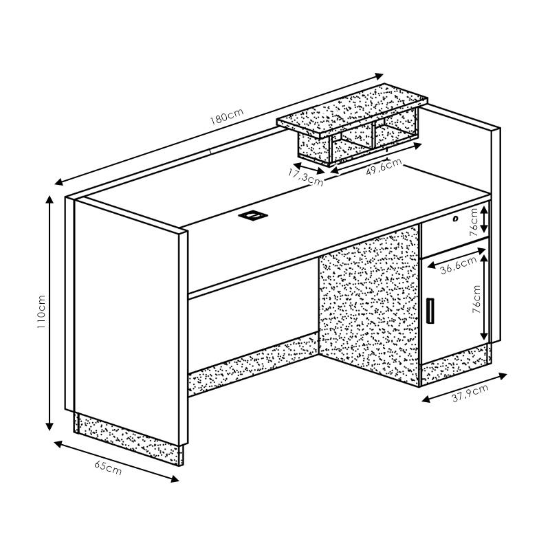 - Main office: Surface made of high quality chipboard with melamine coating.