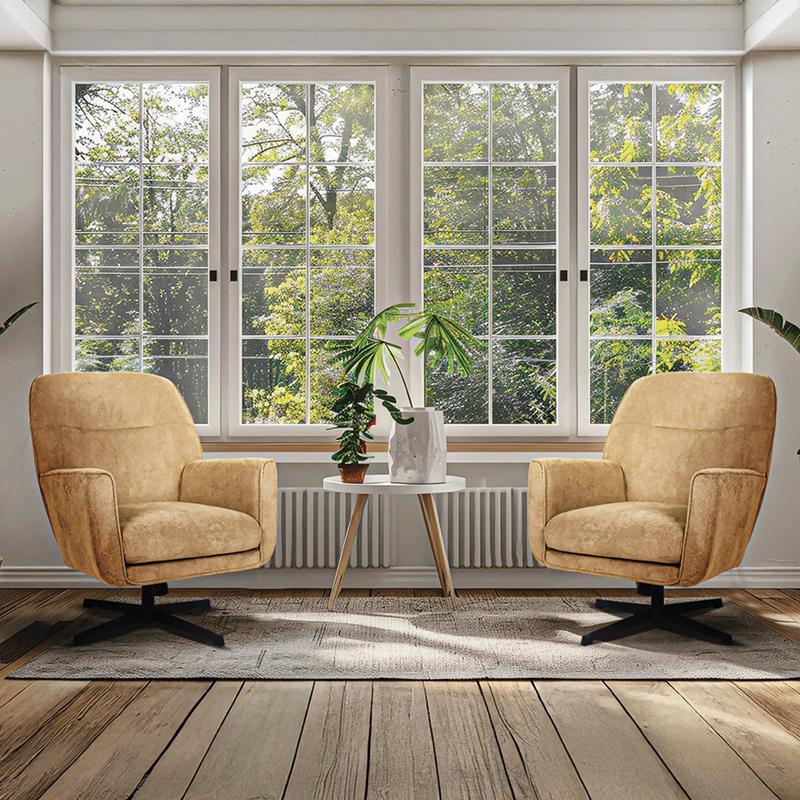 Rotated Armchair Rachel Fylliana with Black Metal Base Yellow 76x80x91.5 cm