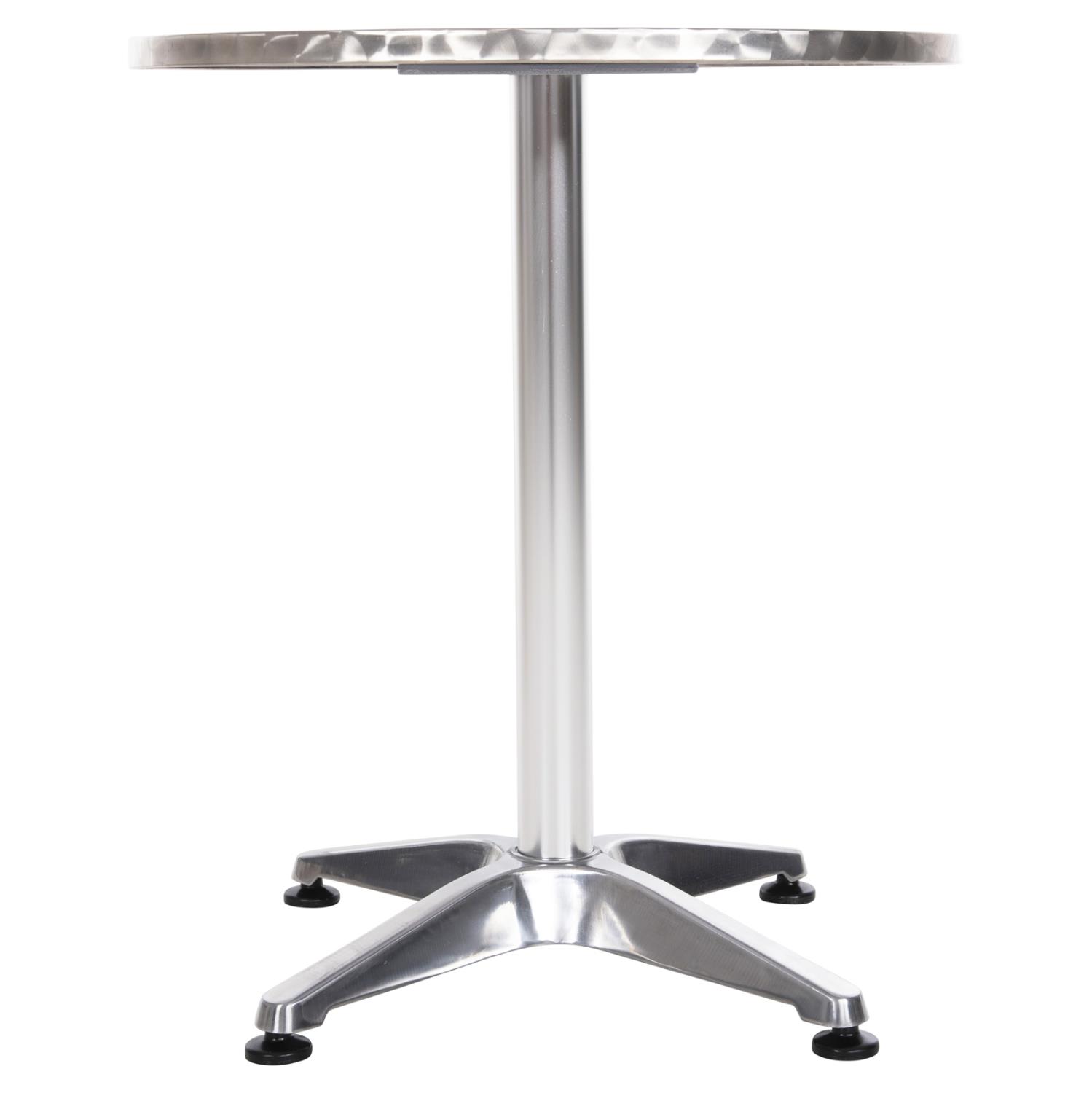 FRODO is a round table made entirely of aluminum in METALLIC color for any outdoor (or even indoor) space. Its base is 4-pronged with height-adjusters on each end while its surface covers the edges. Round tables are particularly practical and beautiful because they do not have tops and "leaders", nor corners or legs in the corners, which often create uncomfortable situations. Combine it with matching chairs or armchairs and create a beautiful ensemble. It will give a sense of simplicity to any outdoor space no matter where it is placed.