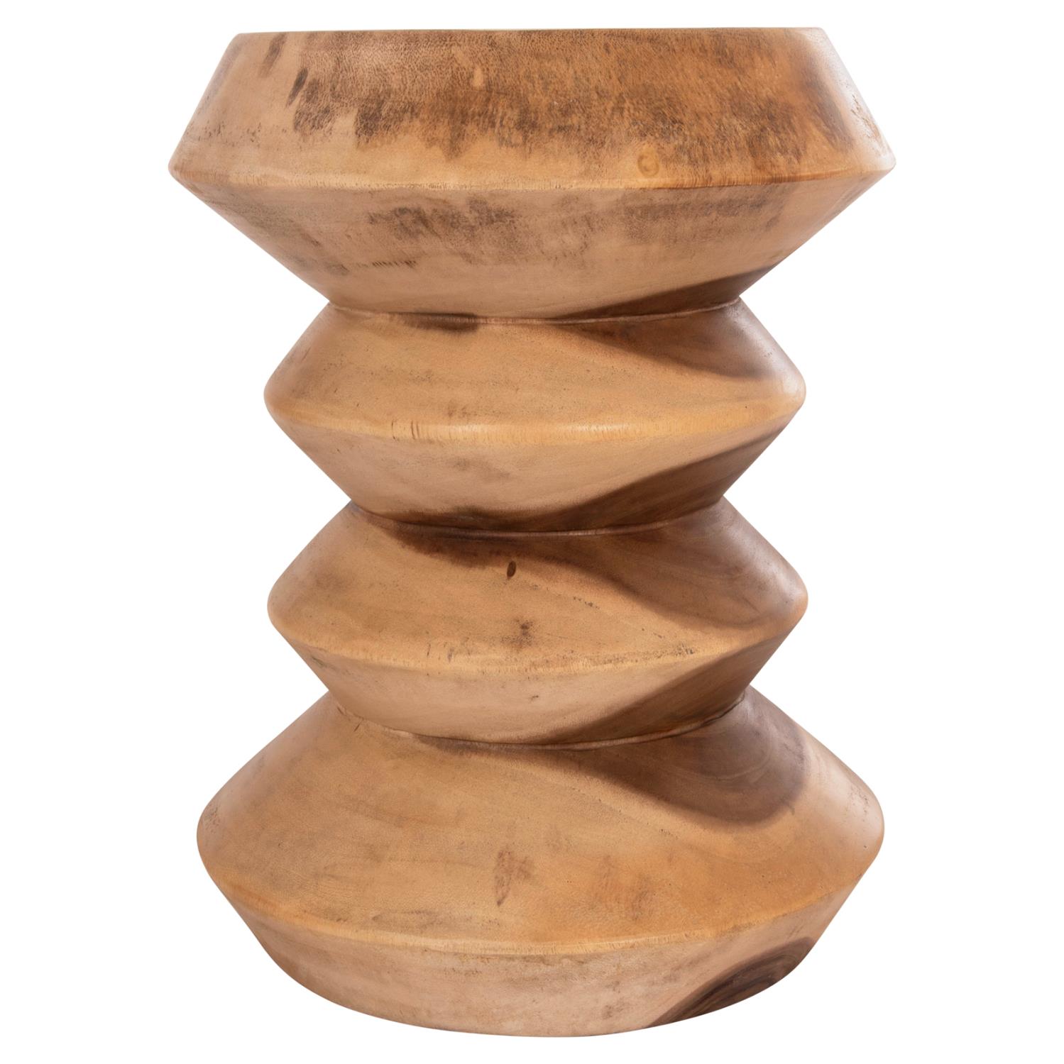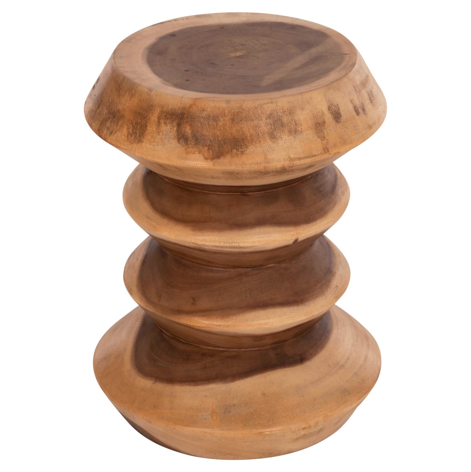 Cylindrical Stool BELLOWS Suar Solid Wood Natural Φ35x45H cm