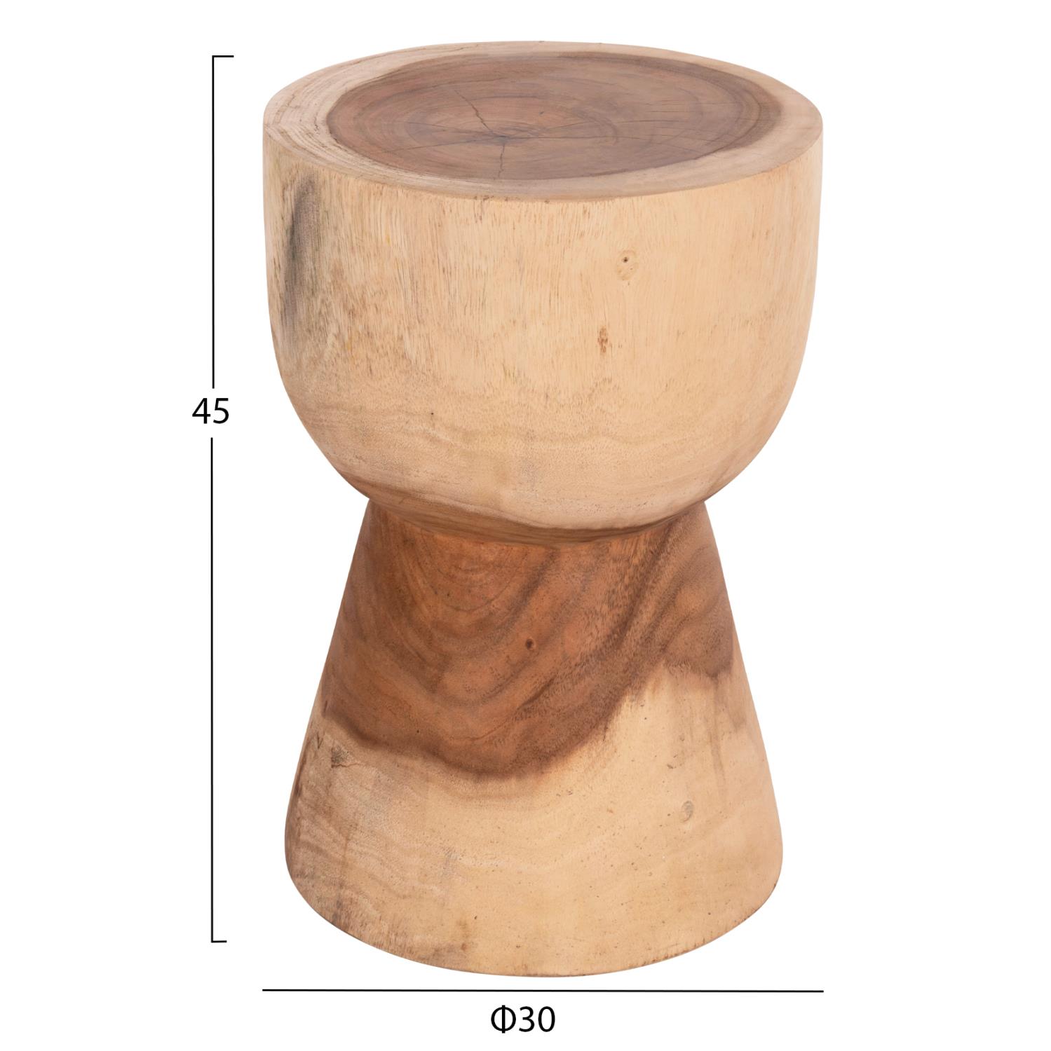 The stool is made of solid SUAR wood. When we refer to solid wood, we mean woods made entirely from the trunk of a tree. Solid wood is the most expensive choice in terms of wood but stands out for its timeless aesthetics.