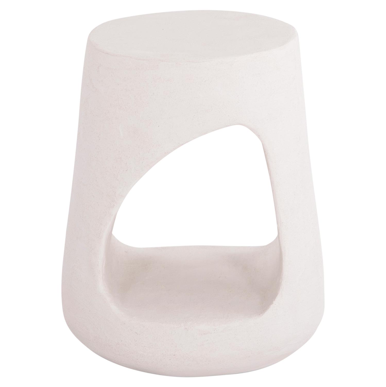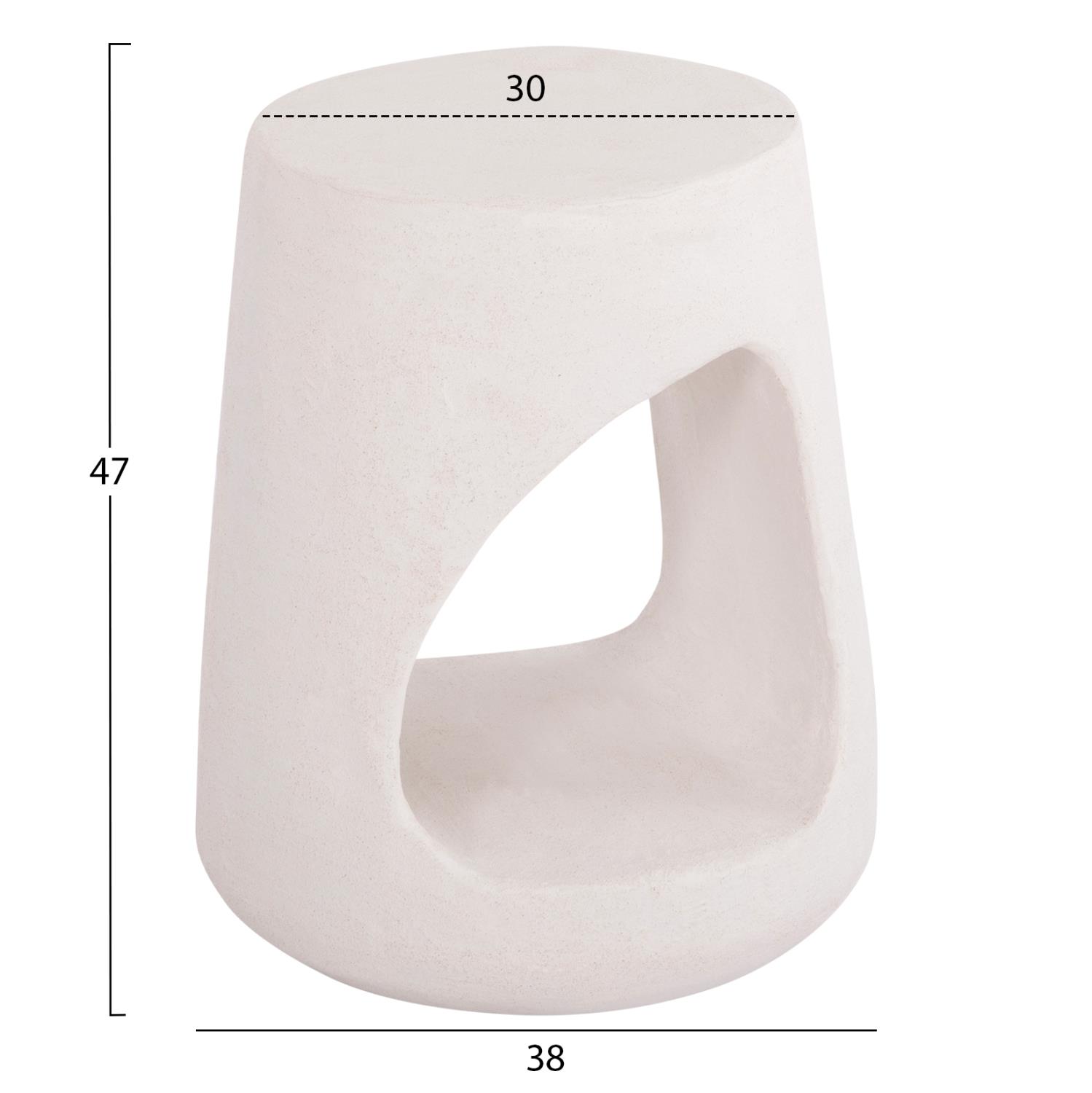 The stool is made of polyresin. Polyresin is a light and durable type of plastic, particularly easy to "work" with and give it various forms.