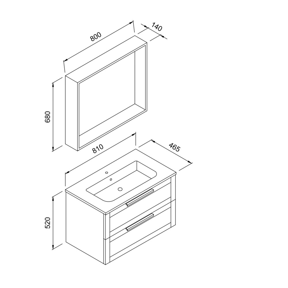 Washbasin: Width: 81 cm. / Depth 46.5 cm.