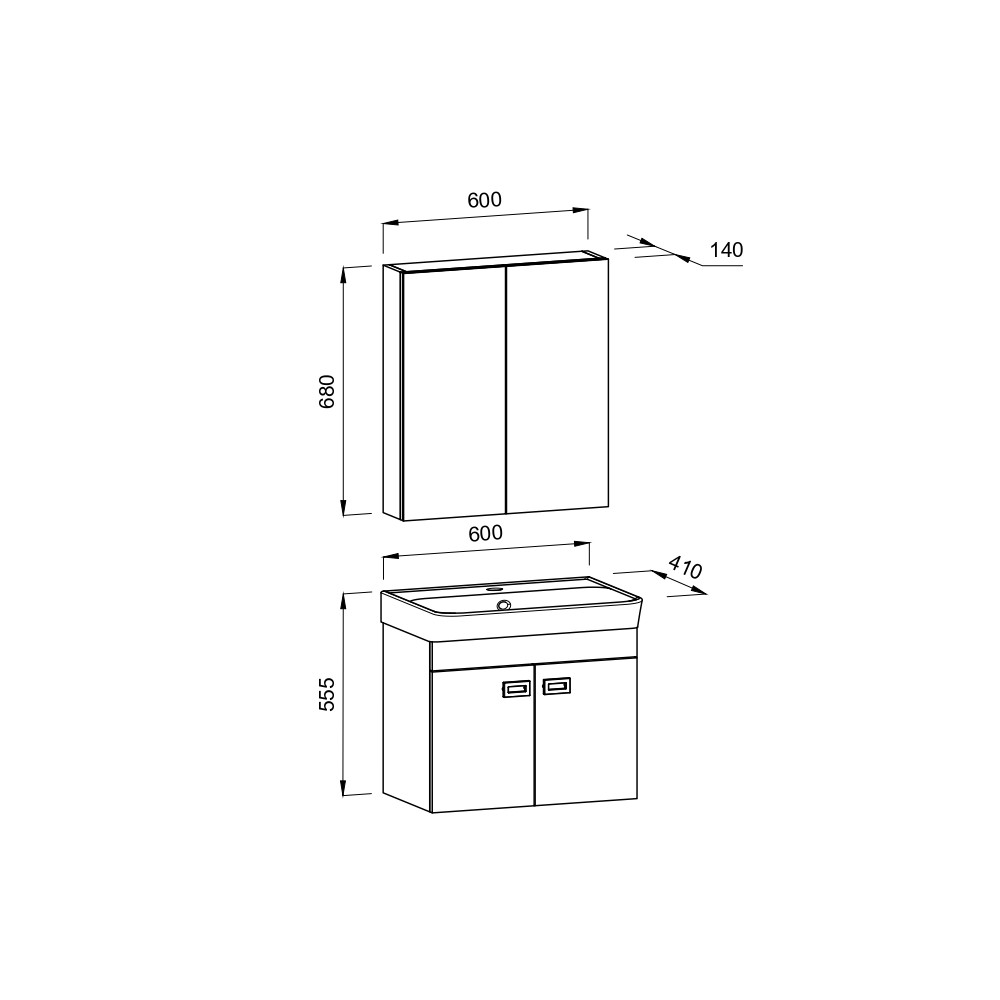 Base Cabinet: Width: 60 cm / Depth: 41 cm / Height: 55.5 cm