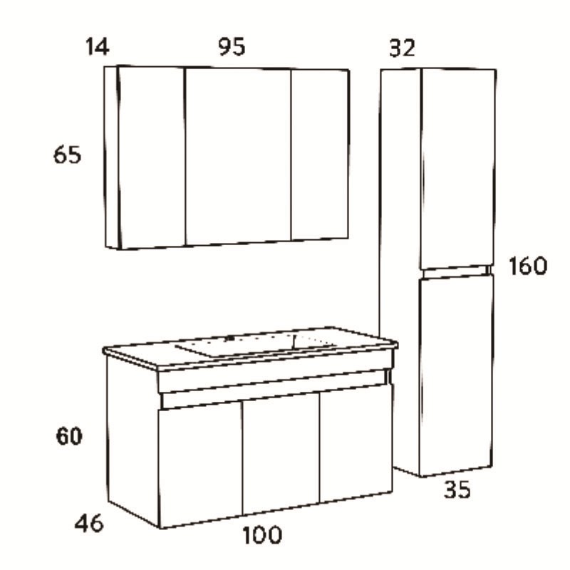 Made of reinforced melamine with a waterproof coating and with soft close mechanisms, the OMEGA 100 bench, washbasin and mirror set will free your hands and beautify your bathroom immediately and economically as it comes ready-assembled for easy installation.