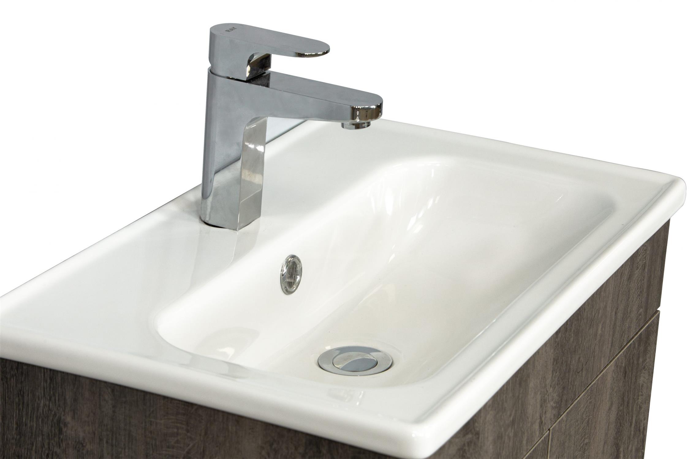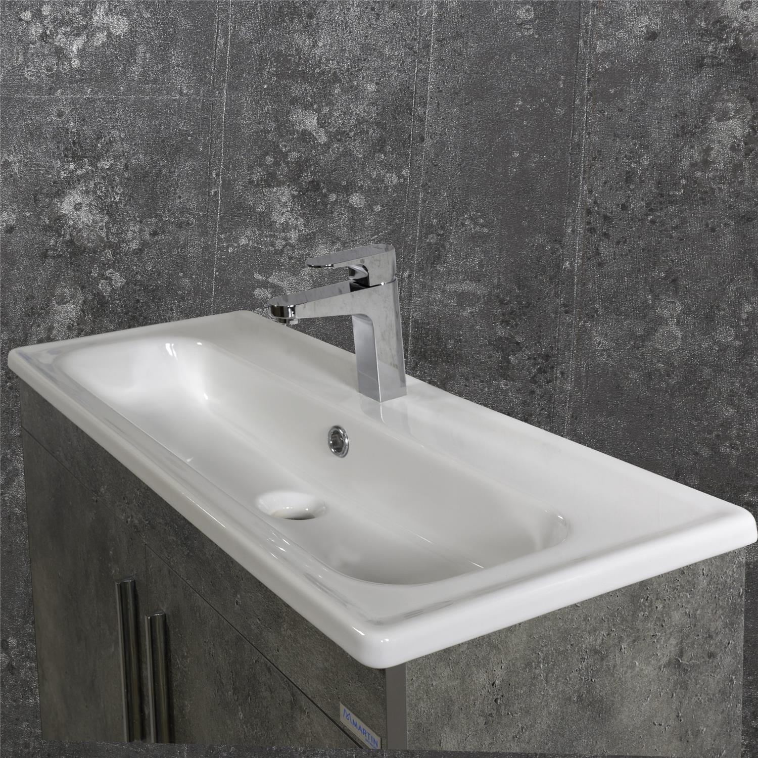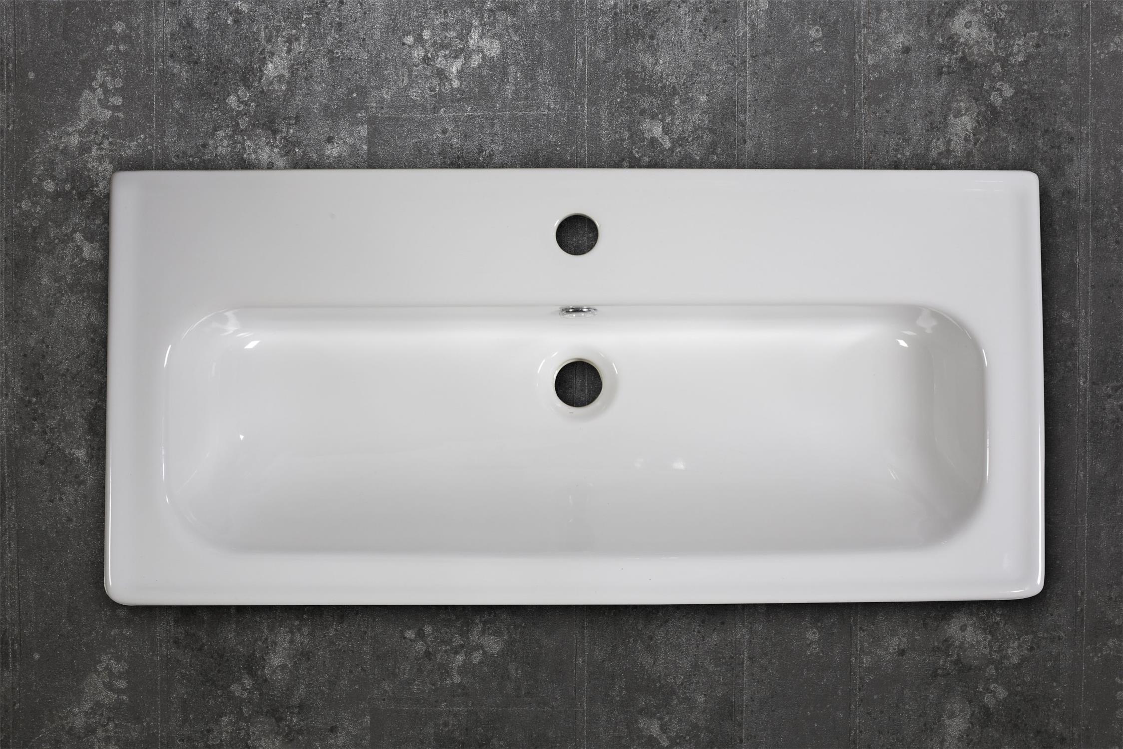 - Sink: A modern geometric design of premium quality, contemporary construction, and high aesthetics with a glossy porcelain texture. Includes an overflow hole.
