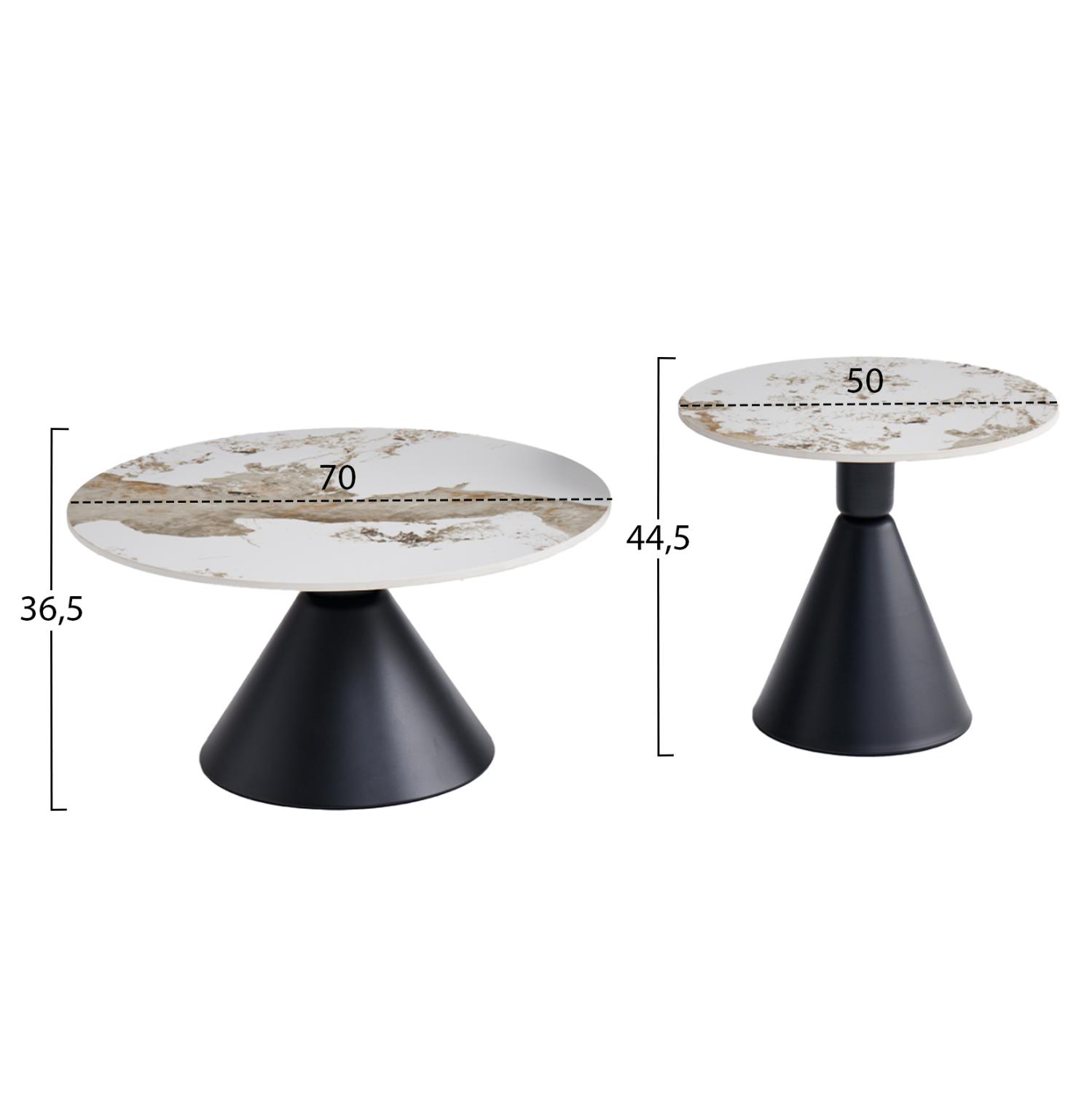Set Coffee tables JEN C18305.02 2 pcs Black Metal-Sintered Stone Pandora color Φ50cm & Φ70cm