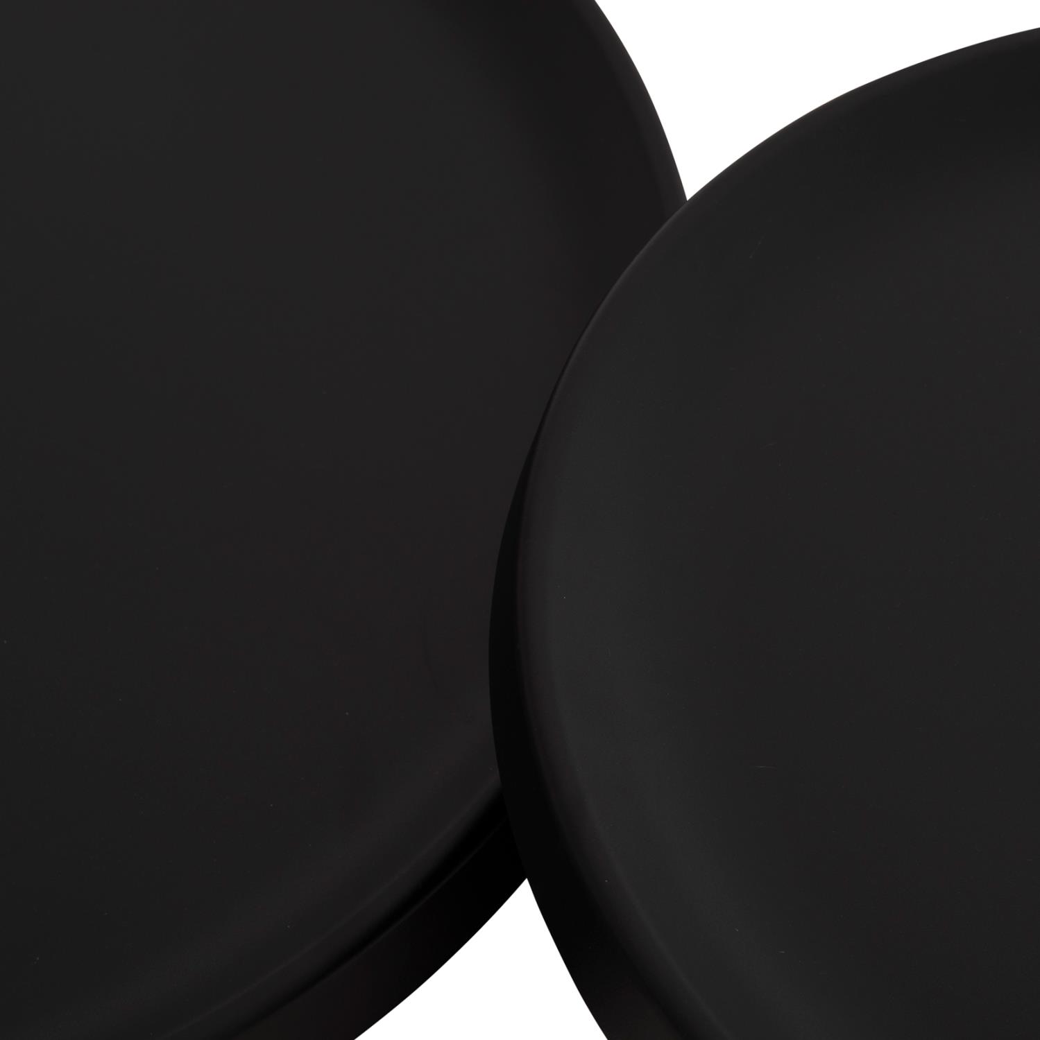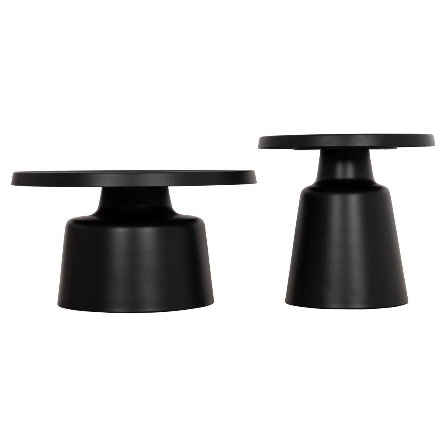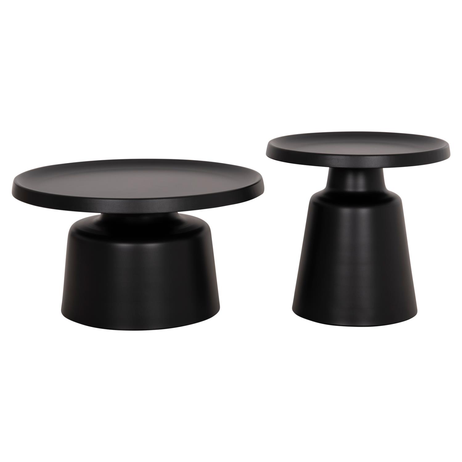 This set of 2 coffee tables is beautiful and very practical. It consists of 2 all-metal round tables of different sizes in BLACK color. One has a conical base that ends in a beautiful "neck", and the other has an almost cylindrical base. Ideal for both home and professional spaces.
