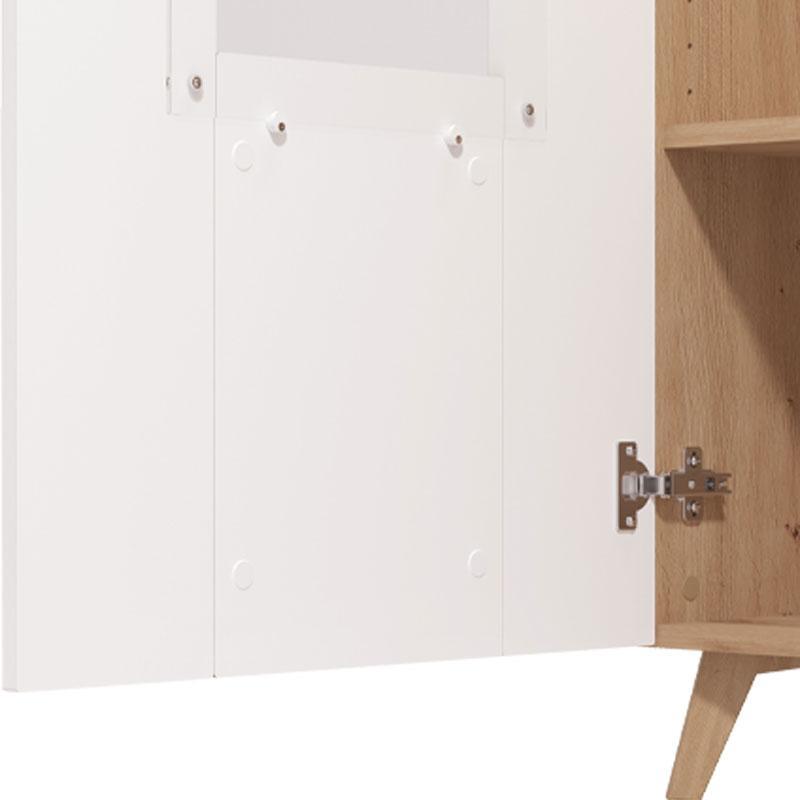 Its modern yet timeless design combines the natural wooden element of artisan oak with white glossy melamine, creating an impressive aesthetic result. Thanks to its functional compartments, it allows you to organize and showcase items such as your "good" tableware, glasses, books or decorative elements, adding refinement and warmth to your space.