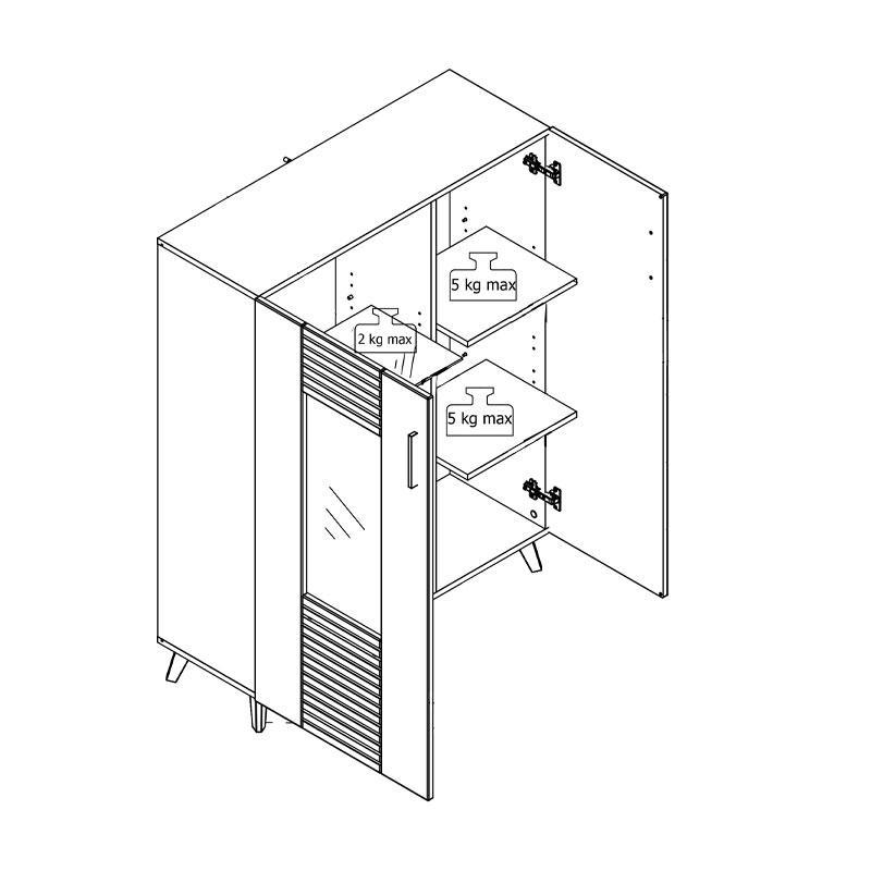 The discreet MDF foiling on the surfaces of the display cabinet and the elegant wooden handle add a touch of luxury, while its durable construction ensures its long-term use. If you want to add even more elegance, you can combine it with elements of soft green, mint or light gray, creating a particularly sophisticated effect.