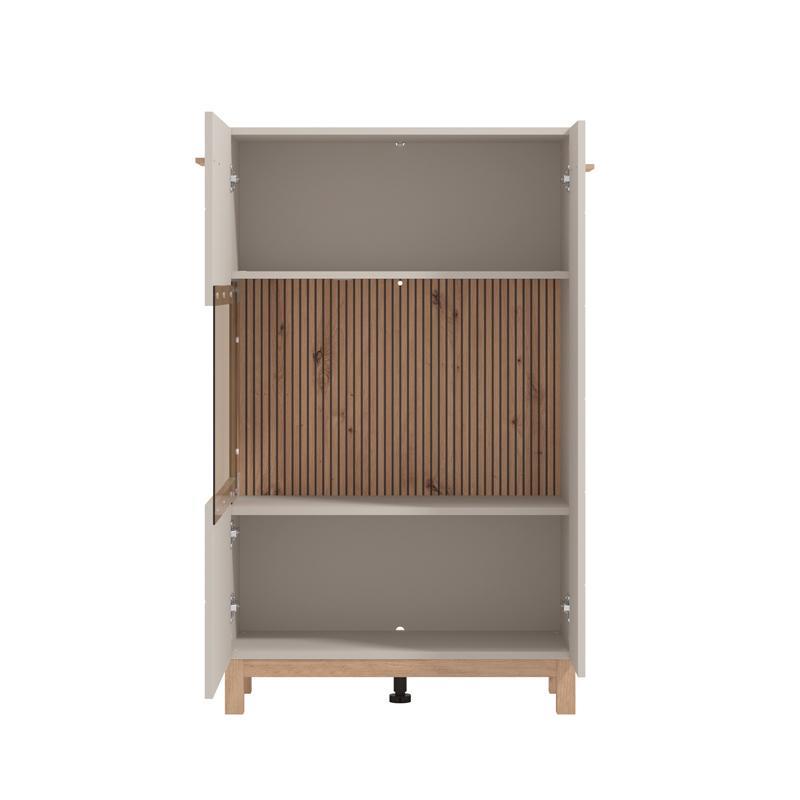 Discover the Essex 2k vs1 127 display cabinet which offers a combination of elegance and functionality. It has a single storage space with two doors, one of which is equipped with smoked glass, allowing visibility of the objects it hosts in an elegant and airy way, while at the same time protecting it from dust. Inside, it has two shelves which create three large storage spaces.