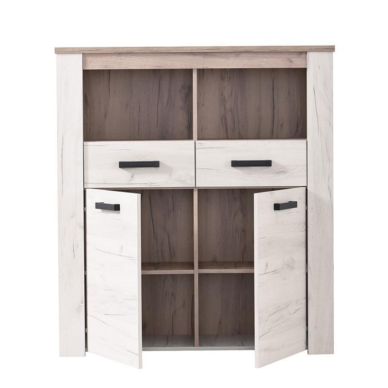 The Kent Display Cabinet is a multifunctional storage solution and can be placed in the living room, bedroom or hall, serving different needs. Thanks to its smart design, it features multiple shelves and cabinets, allowing you to organize objects, decorations or even store several pairs of shoes.