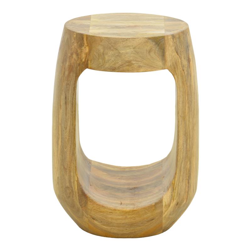 Discover the power of minimalism with this unique side table crafted from solid mango wood. Its innovative design, featuring a central opening, creates a play of light and shadow, bringing a sense of airy elegance to your space. With its natural finish, it highlights the organic beauty of the wood, making it a sculptural piece that seamlessly blends art with functionality.