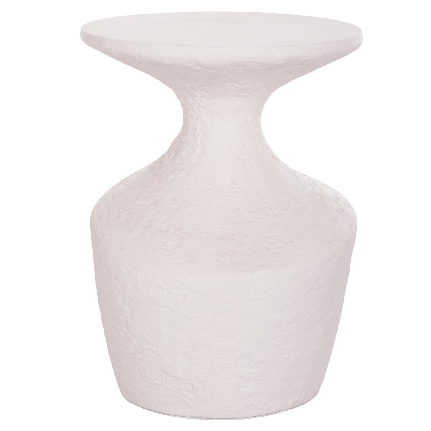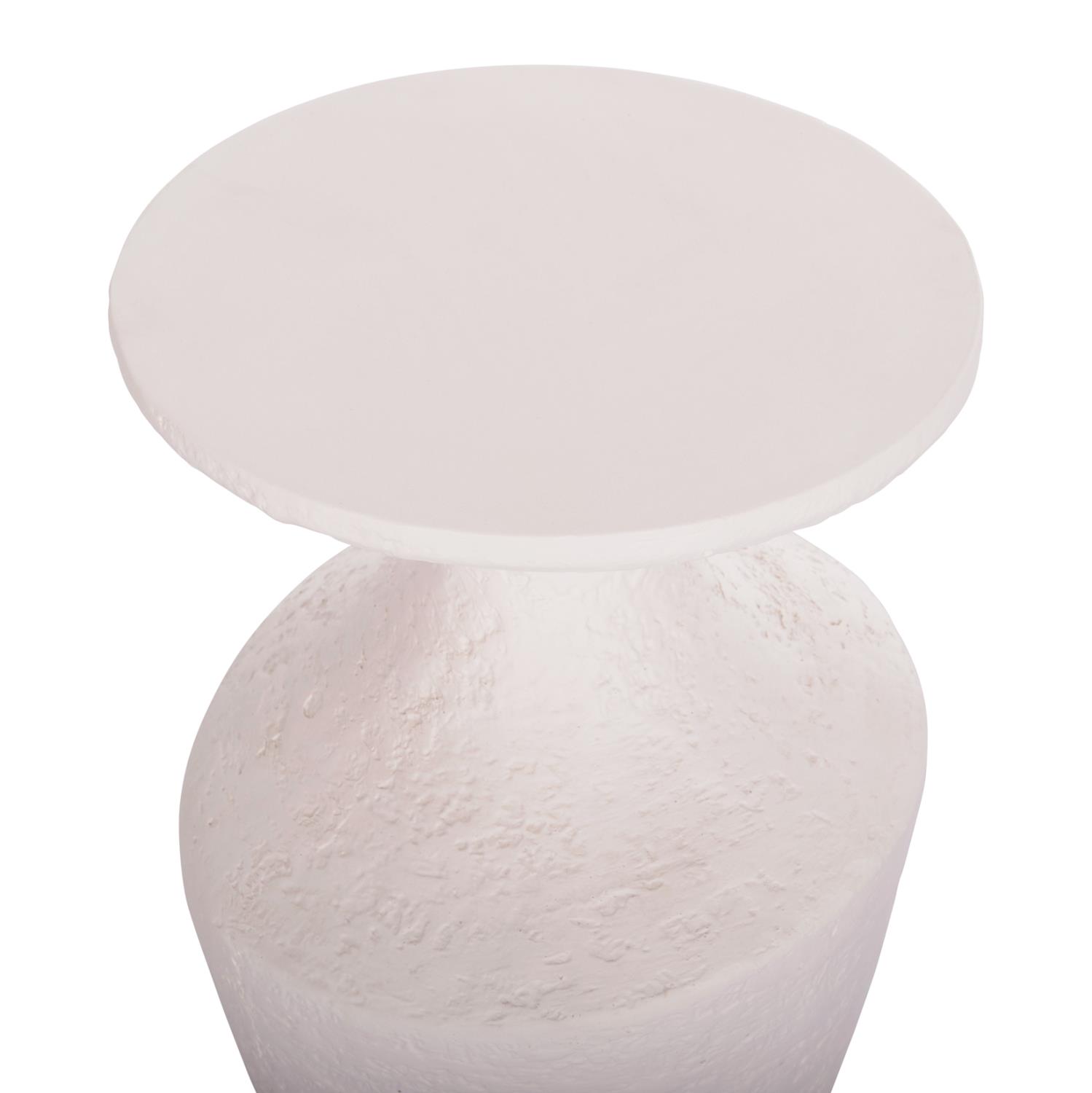 The REBON side table is round with a modern design. It is made entirely of Fiber Cement in WHITE color with a rough texture that is the latest trend in interior design. An ideal complement for both home and professional spaces, such as hotels, AirBnB, etc.
