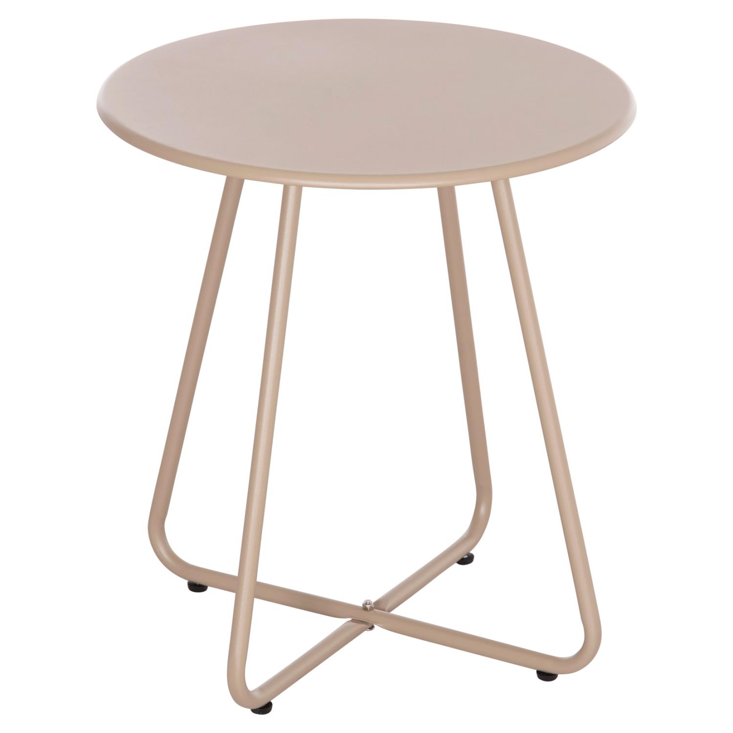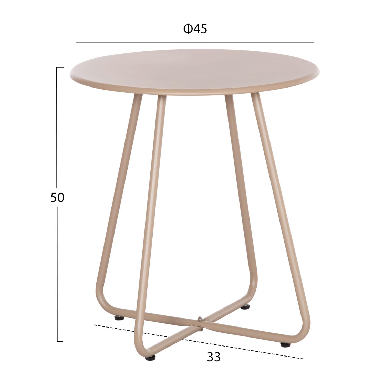The SAMMON side table will surprise you with its simple style and practicality. It is a round metal table with a cross-shaped base. It is in CAPPUCCINO color.