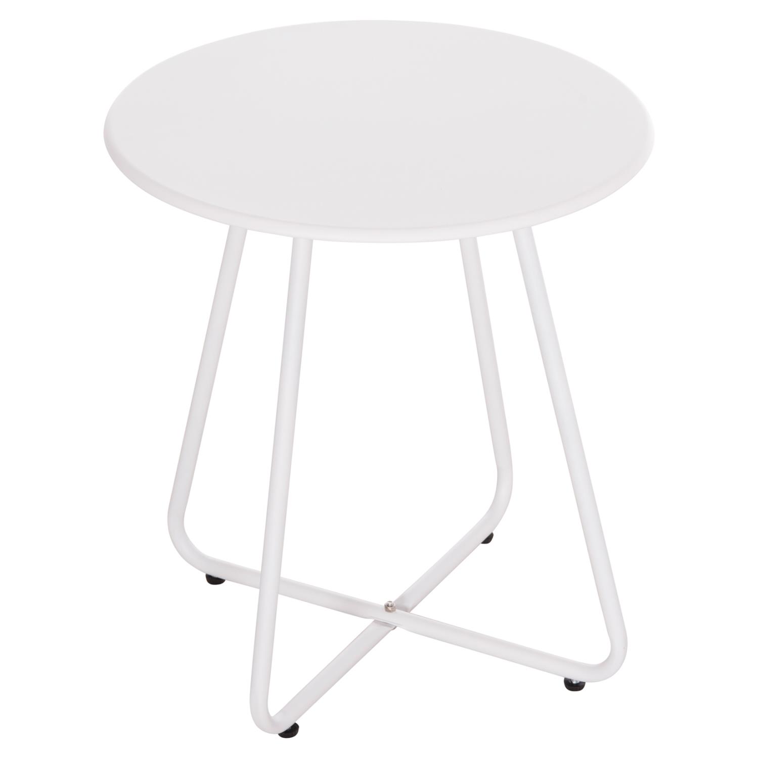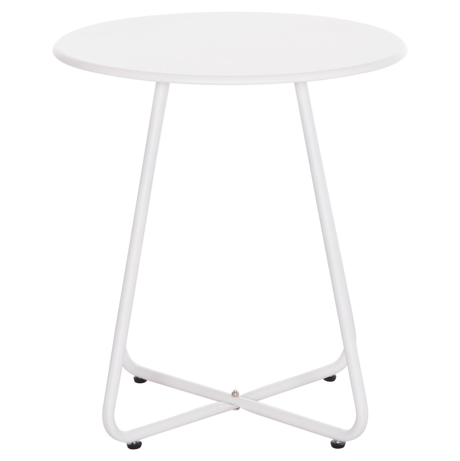 The SAMMON side table will surprise you with its simple style and practicality. It is a round metal table with a cross-shaped base. It is in WHITE color.