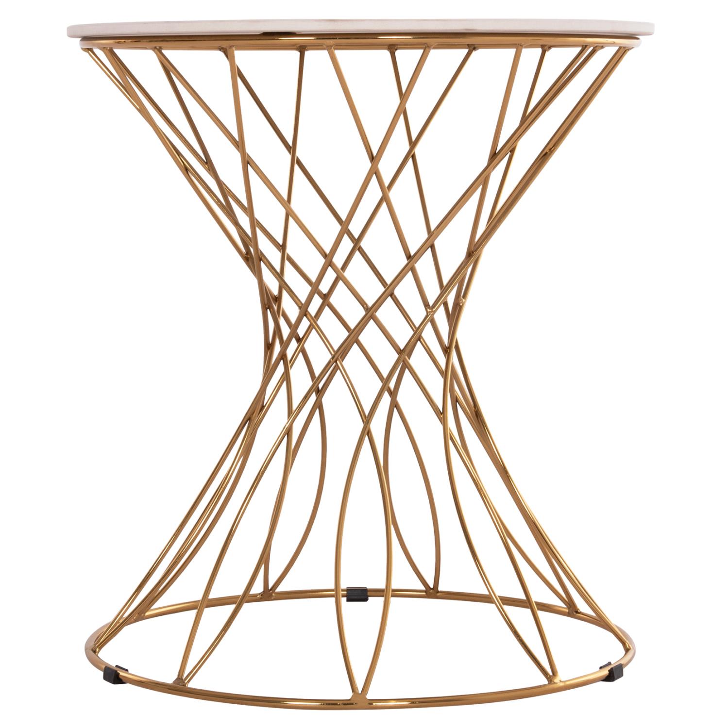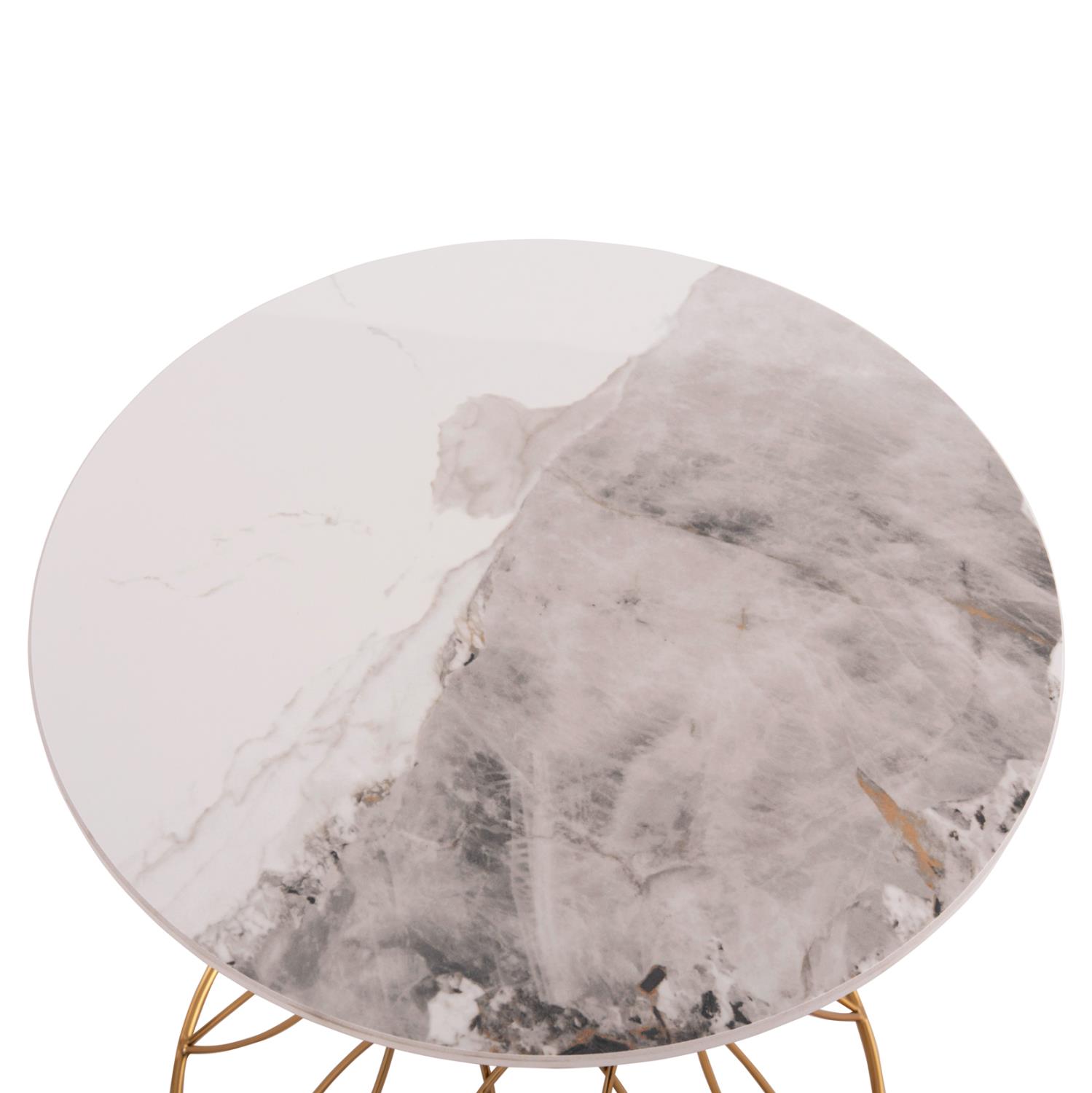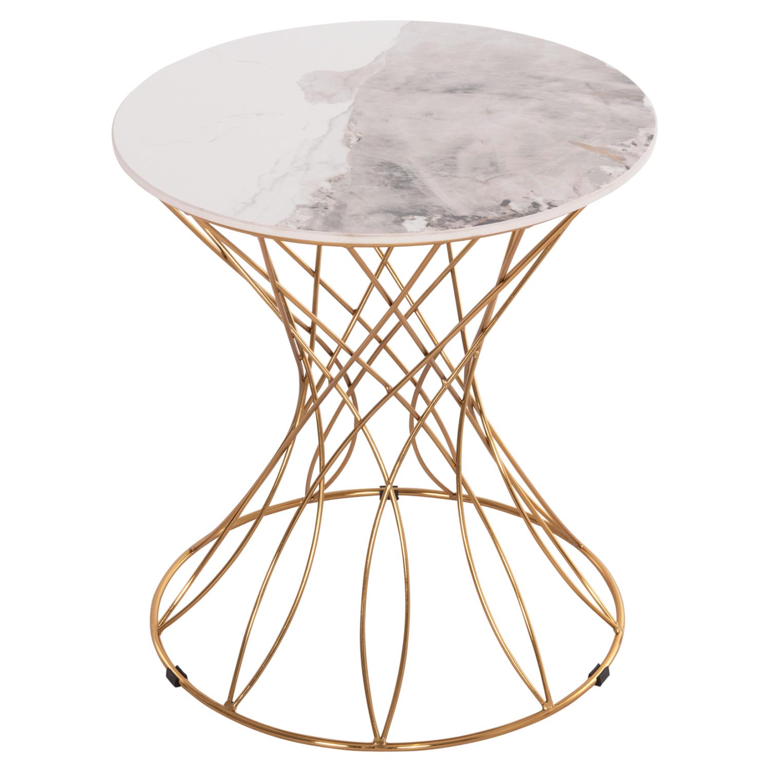 The RUDY side table is one of the new additions to our range. It is a round table with a beautiful metal base in glossy GOLD color. The tabletop is ceramic in WHITE color. Ideal for both home and professional spaces.