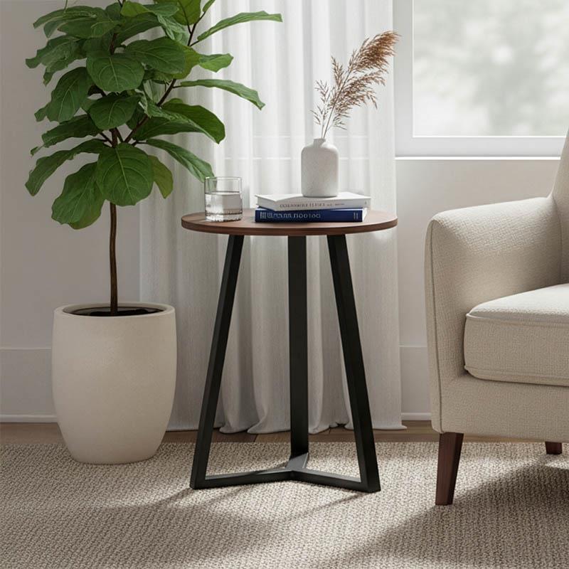 Βοηθητικό τραπεζάκι σαλονιού Trepolo σε καρυδί με μαύρο μέταλλο Φ45x52εκ.