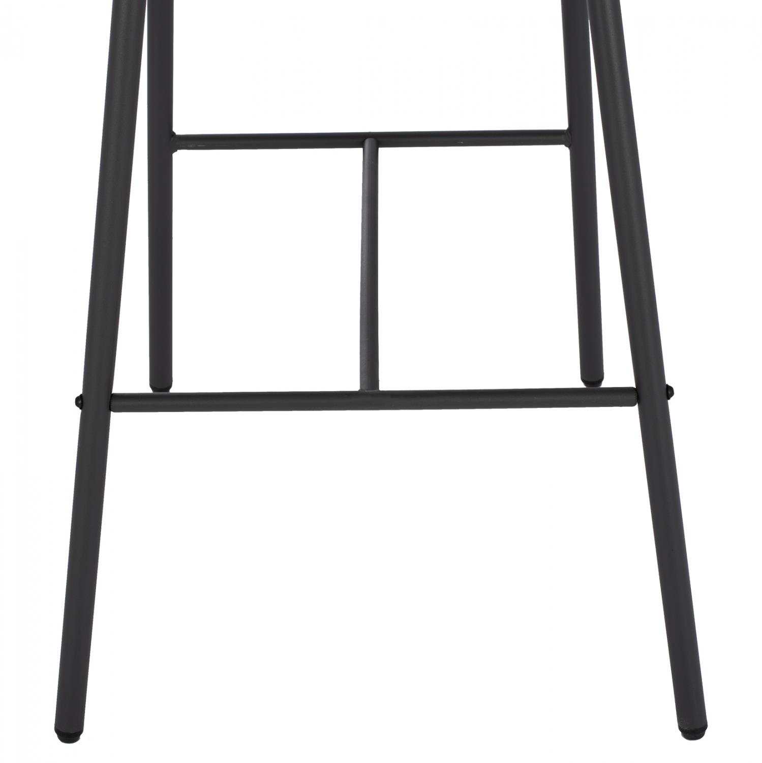 Μοντέρνο σκαμπό με πλάτη και μαξιλάρι, εξωτερικού αλλά και εσωτερικού χώρου, κατασκευασμένο από μεταλλικό σκελετό σε γκρι απόχρωση, επενδυμένο με πλεκτό σχοινί σε επίσης γκρι απόχρωση.