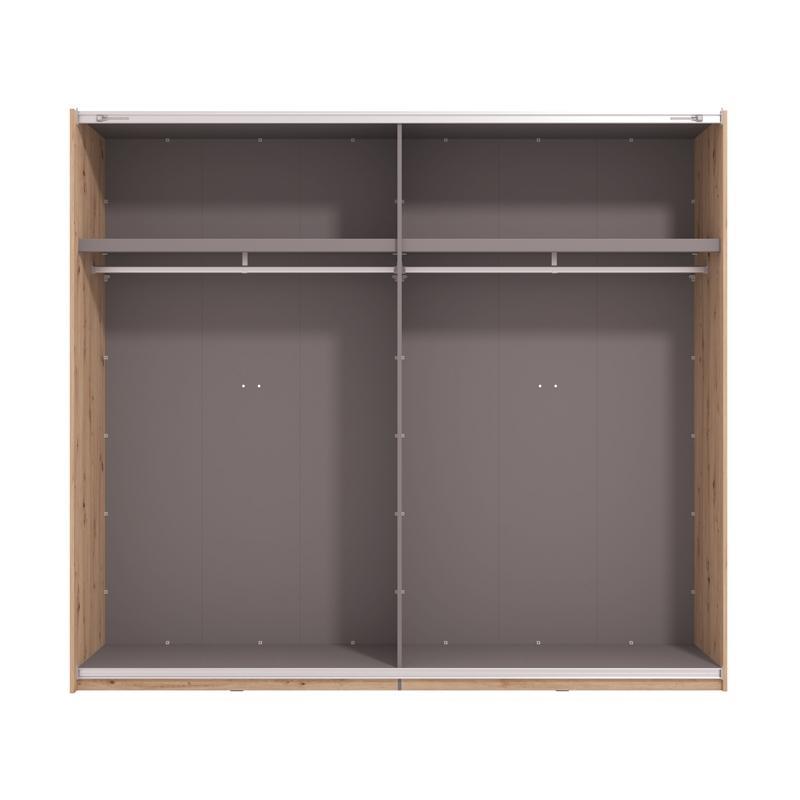 Discover the GARD 245 sliding wardrobe, which is an excellent choice for those who wish to combine modern aesthetics with practical storage. It has two sliding leaves and a total width of 245 cm, offering even more capacity, making it an ideal choice for larger bedrooms or for those who want extra organization space without sacrificing style.