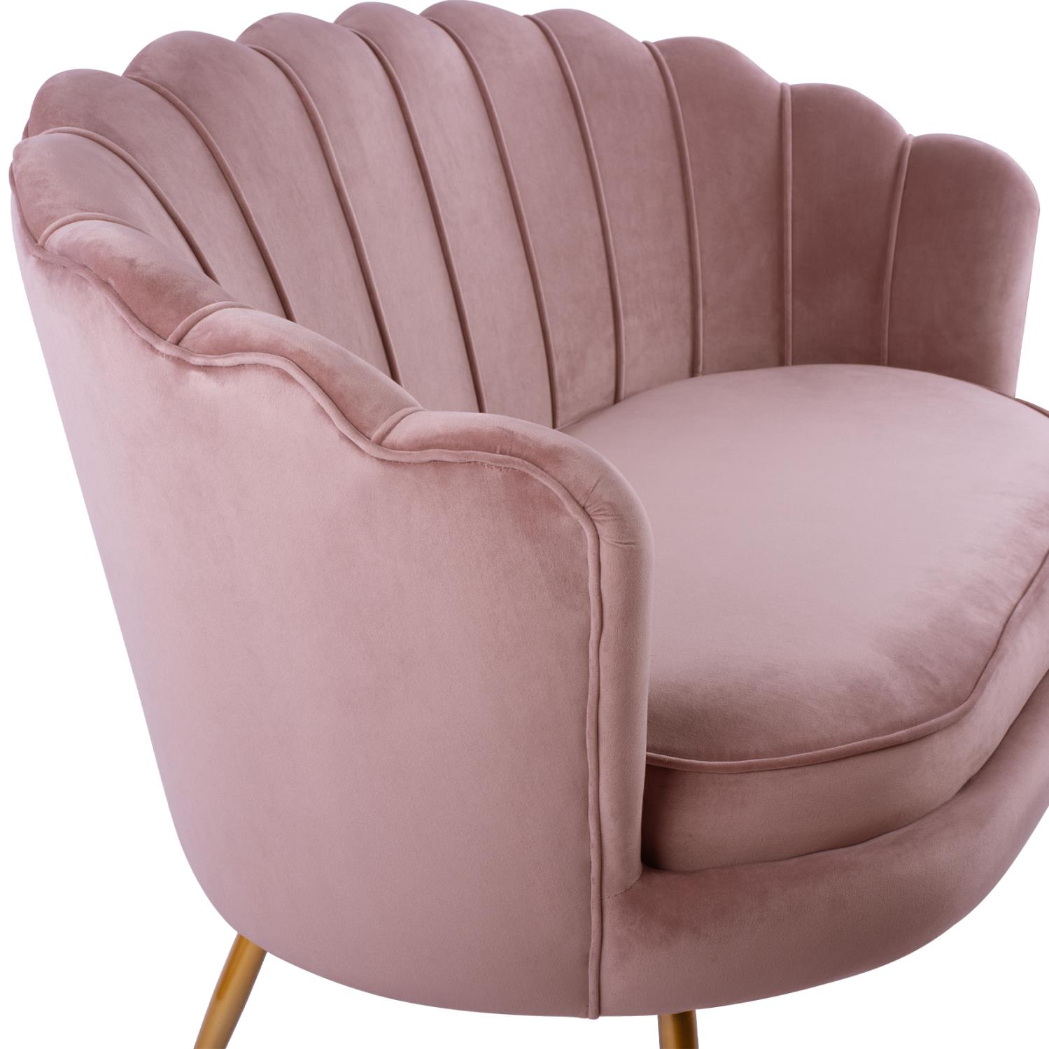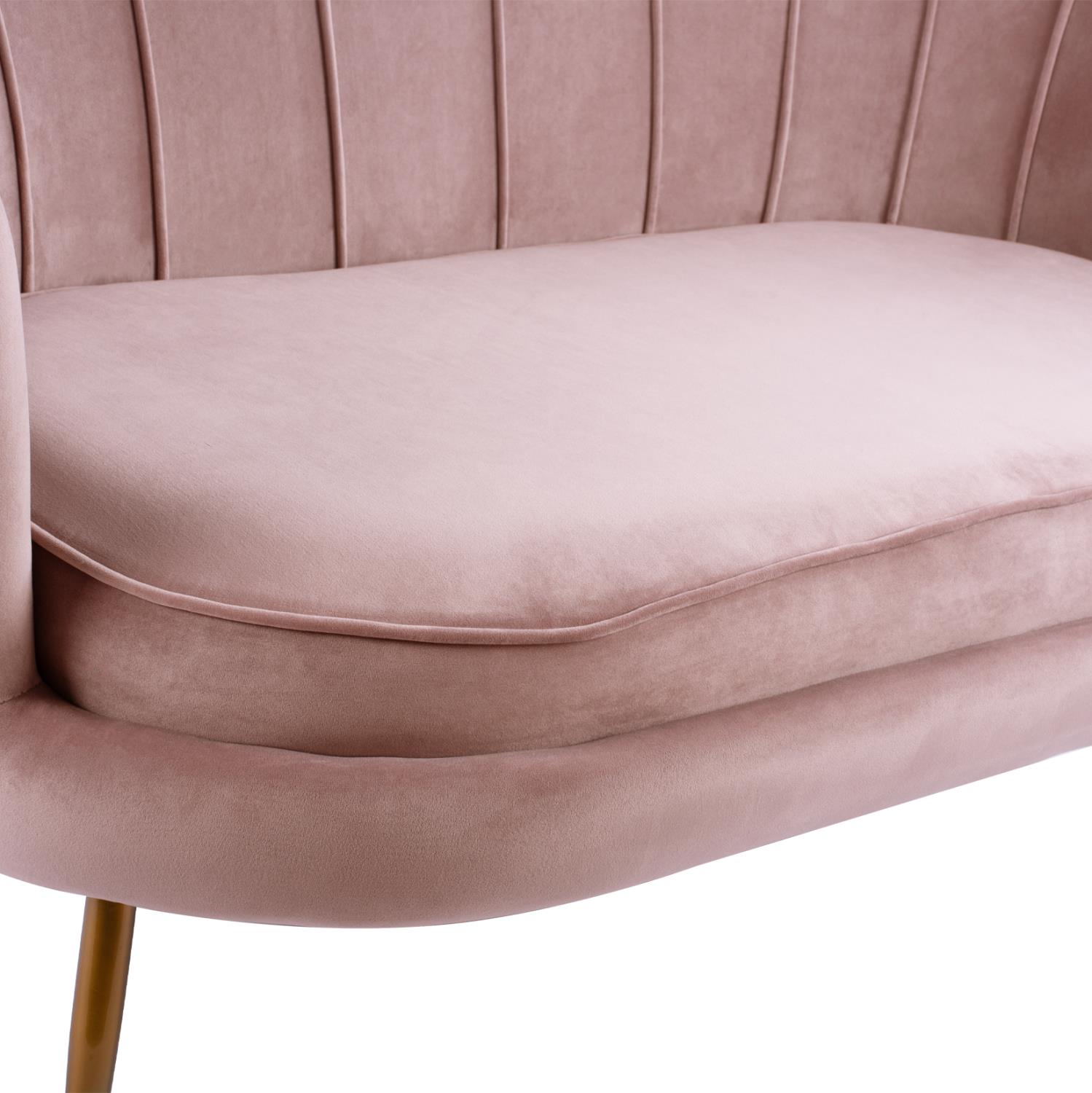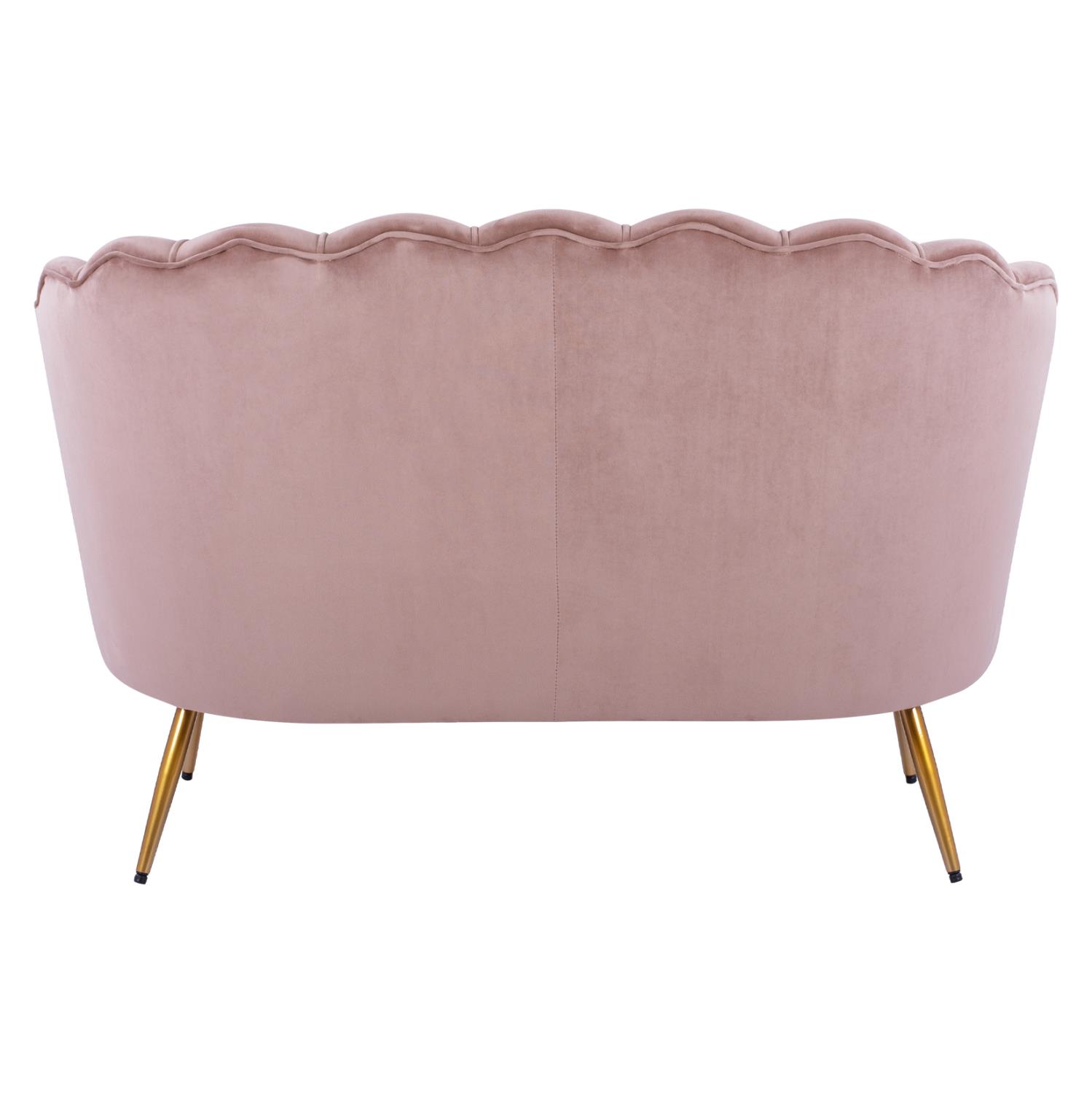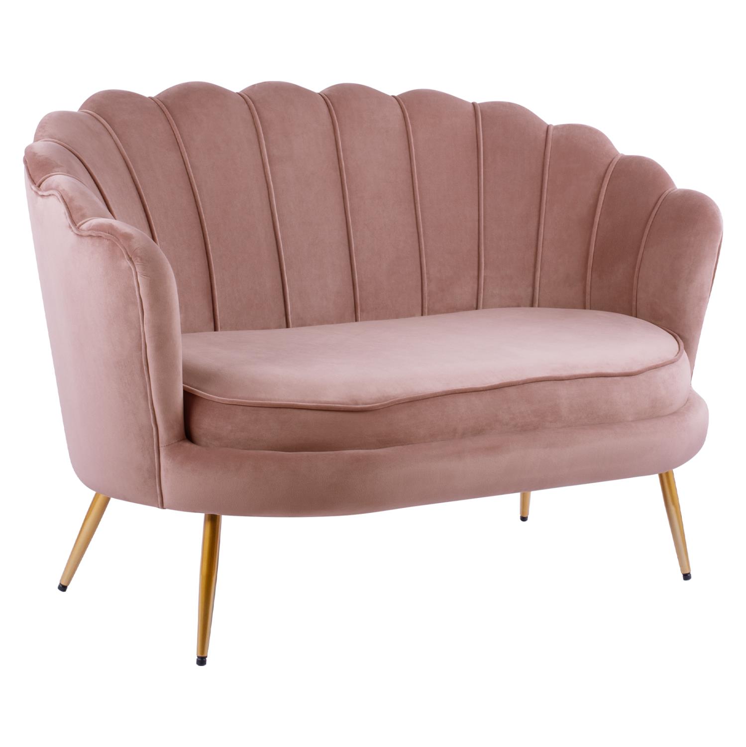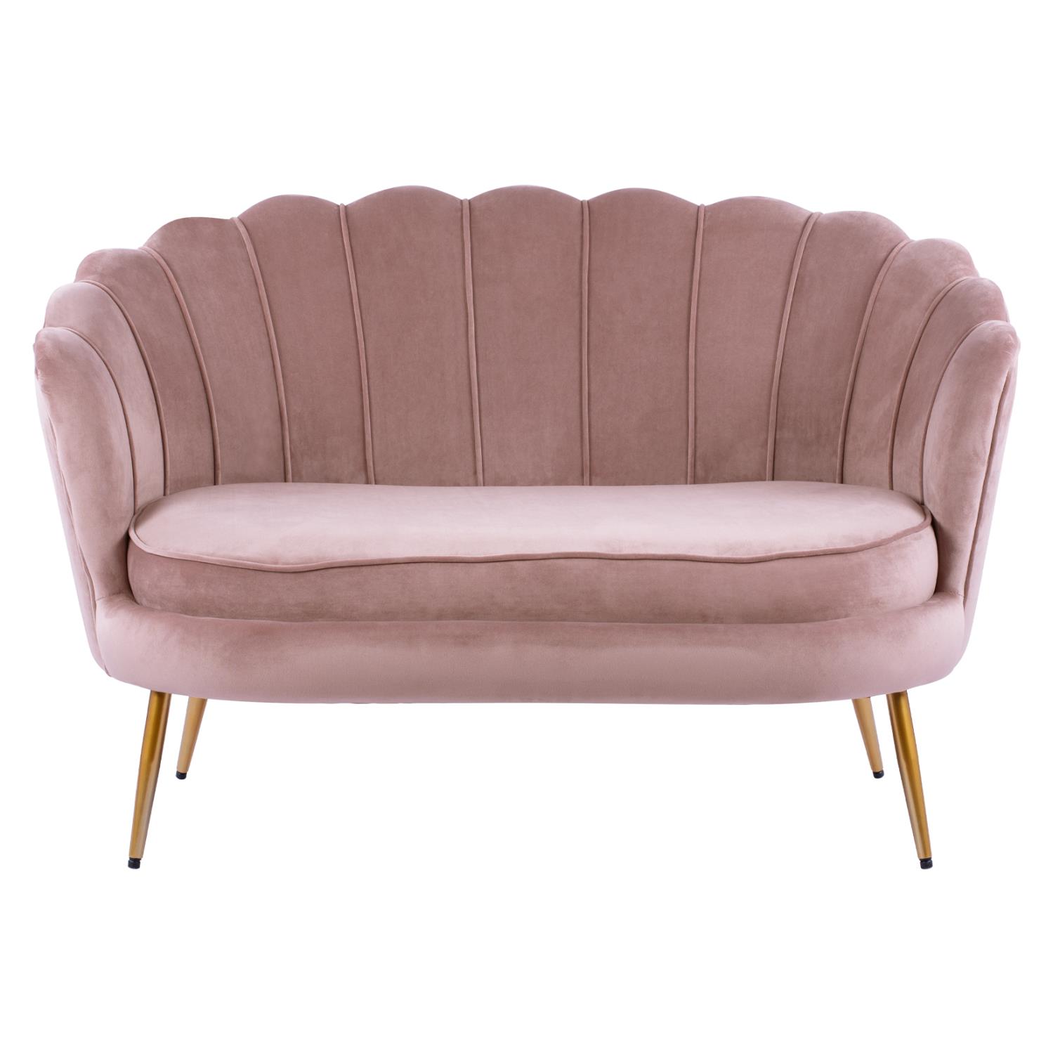 Double velvet COQUILLE sofa in rotten apple with metallic legs in gold.