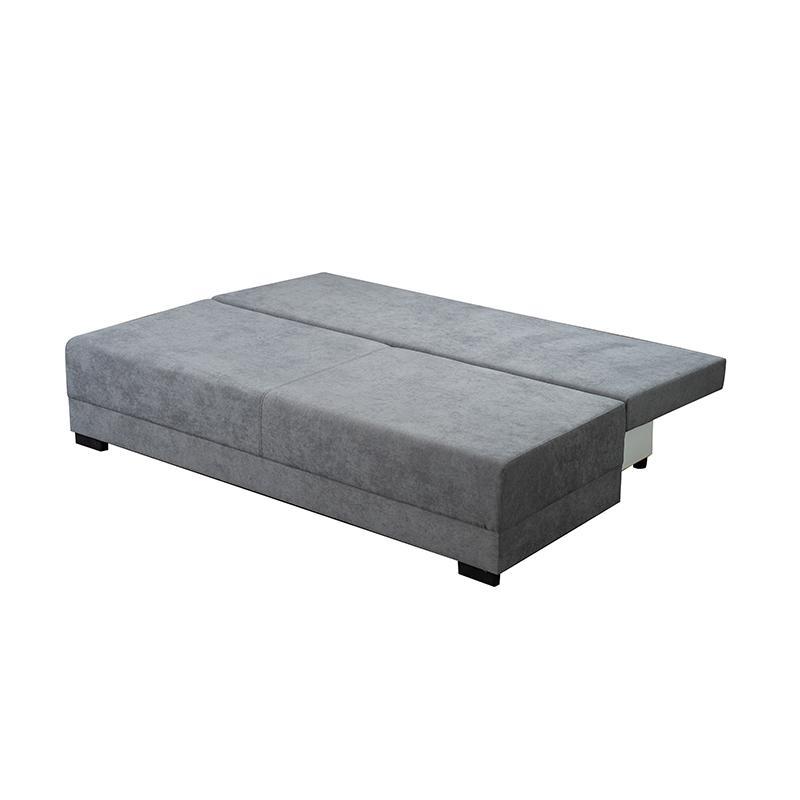 The sofa becomes a bed by folding the backrest. To extend, pull the seat lengthwise and fold the backrest.