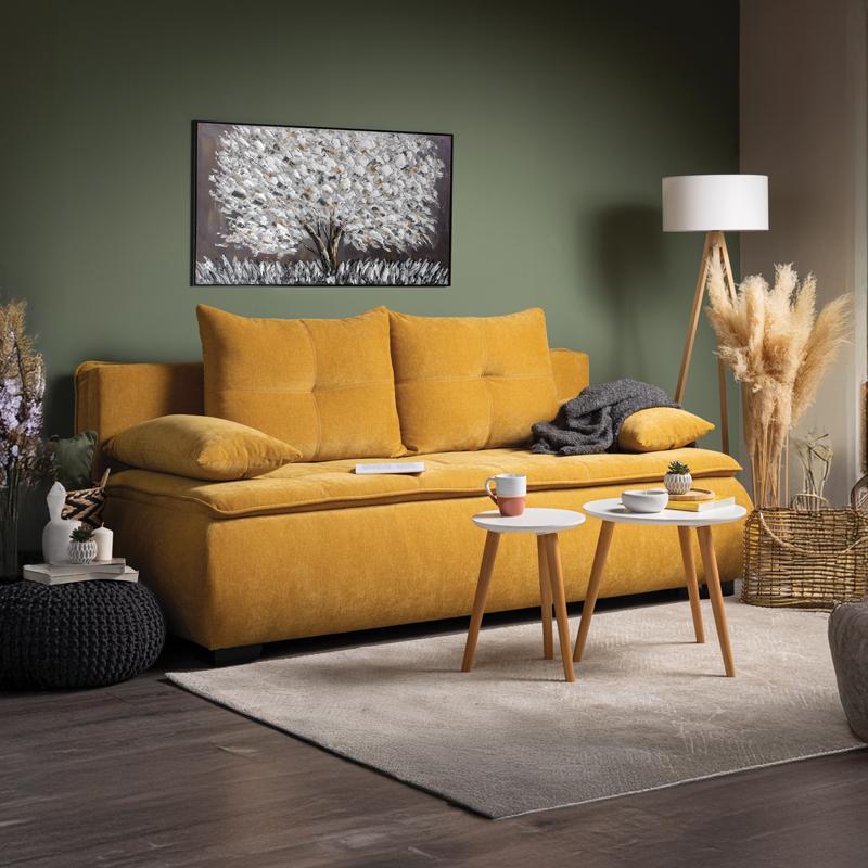 Renew your space with style and practicality with the Mina sofa bed, the ideal combination of comfort, functionality and modern design. Upholstered in soft fabric in a vibrant yellow color, Mina brings light and character to any living room or guest room.