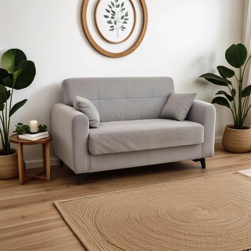 Sofa-bed with storage two-seater Lincoln light gray fabric 165x85x90cm