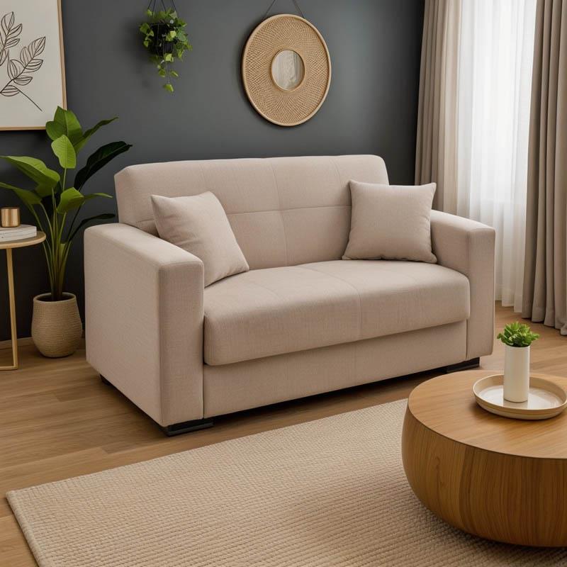 Καναπές - Κρεβάτι Vox με Αποθηκευτικό χώρο 2θέσιος Ύφασμα Κρέμ 154x82x83 εκ.